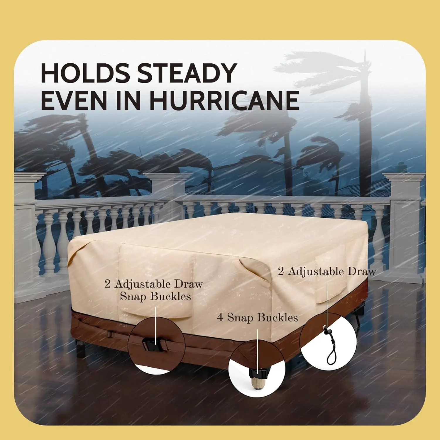 Enhance your outdoor living space with our premium patio furniture covers, designed to provide reliable protection and durability. Key features include: 1. Superior Weather Resistance: Crafted from high-quality 600D Oxford fabric, these covers offer excellent waterproofing and tear resistance. They shield your furniture from rain, snow, sun exposure, and hail storms year-round, ensuring long-lasting condition without fading or damage. 2. Perfect Fit for Your Set: Available in various sizes to match different patio furniture configurations. This specific cover measures 108 inches long by 82 inches wide by 28 inches high, ideal for sets up to similar dimensions. Note that fit may vary based on furniture shape and depth; always check measurements for a snug alignment. 3. Adjustable Customization: Featuring innovative design elements like two adjustable buckle straps and a drawstring system with four click-close straps. Easily tailor the cover’s hem for a secure, custom fit that prevents slipping or flapping in windy conditions. 4. User-Friendly Installation and Storage: Designed with convenience in mind, these covers include four handles for easy maneuvering during setup or removal. Air vents help reduce condensation and ballooning, keeping furniture dry while allowing airflow when not in use; simply fold compactly for efficient storage. 5. Versatile Protection: Beyond tables and chairs, these durable covers can safeguard benches, loveseats, barbecues, and other outdoor items from harsh elements—ideal for patios, decks, gardens or any exposed area needing reliable coverage. Invest in quality protection today to maintain your outdoor investments effortlessly!