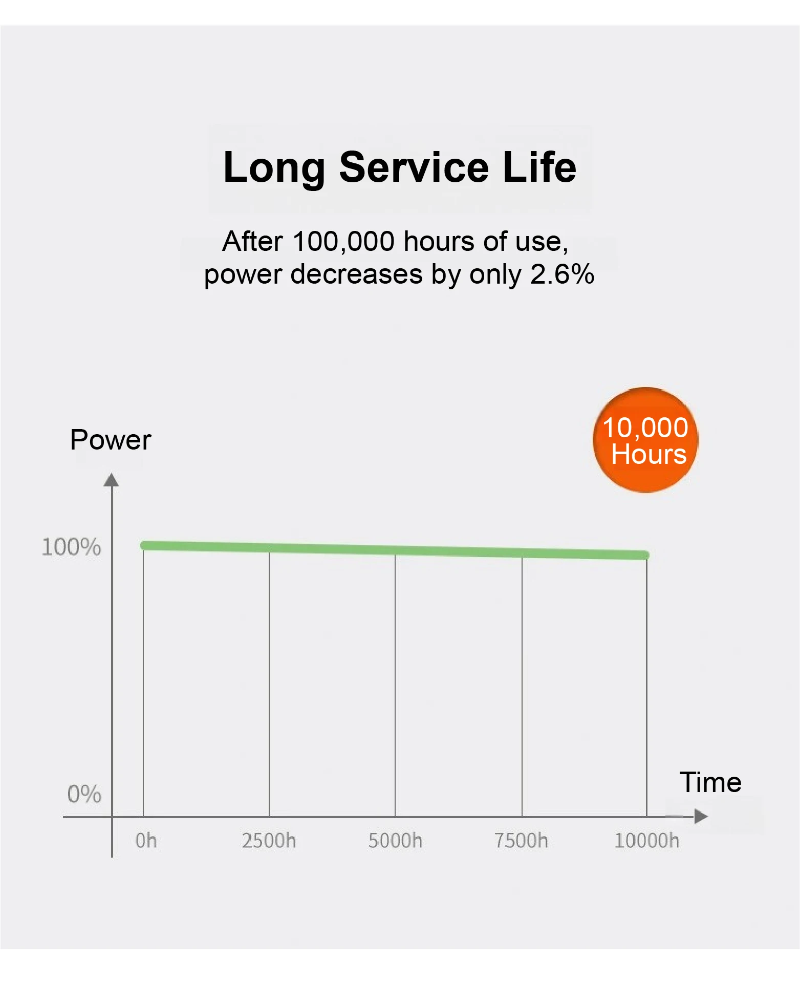 Operates up to 100,000 hours with only 2.6% power degradation.