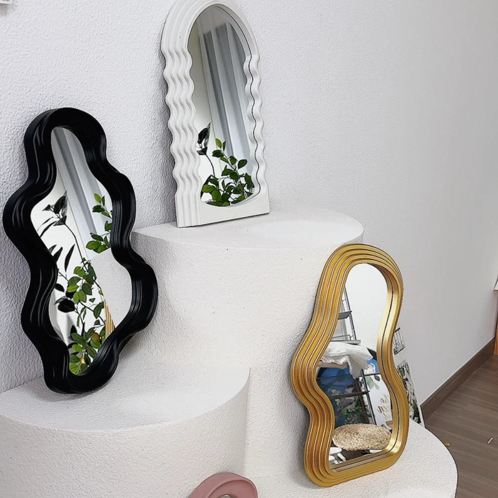 STYLISH DESIGN: Funky mirror The irregular frame with wave pattern adds a unique touch to your home decor.