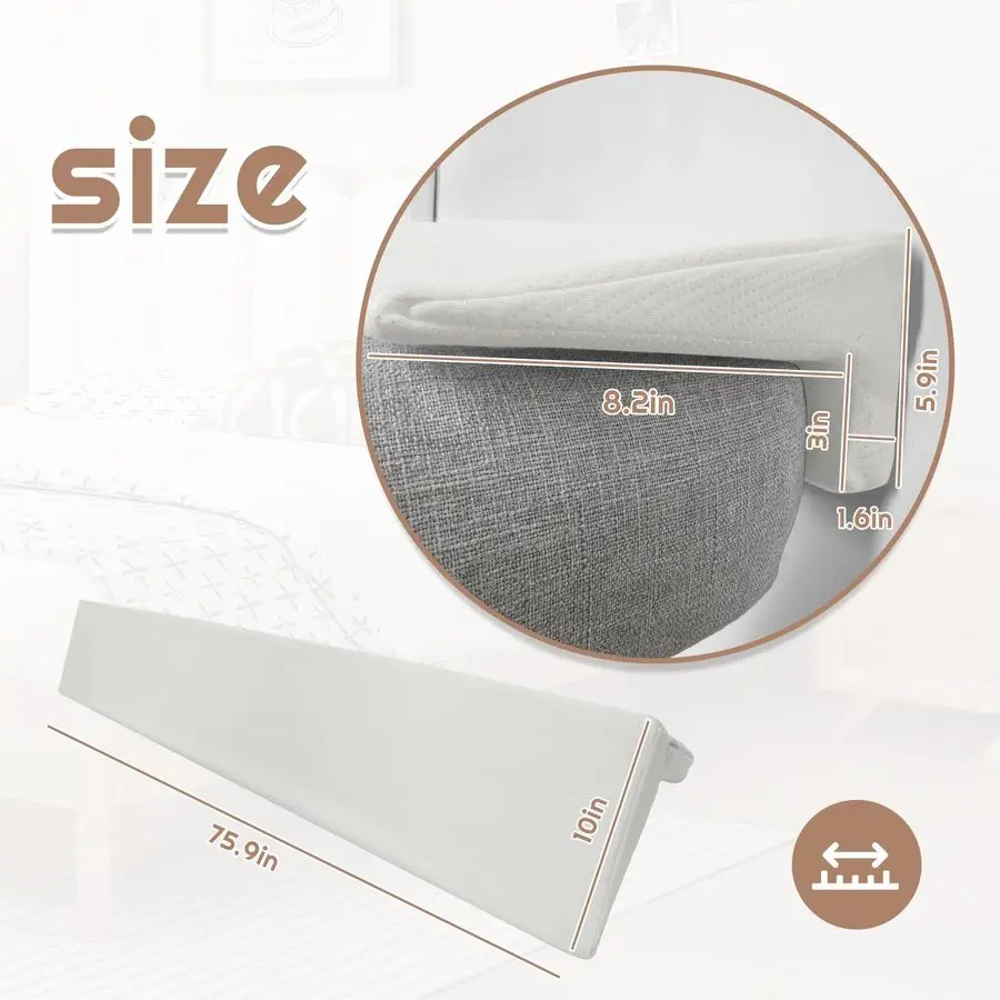 FILL GAPS LESS THAN 1.6 INCHES The wedge pillow is designed for most bed seams, effectively preventing items and dust from collecting under the bed and raising the angle of your pillow for a more comfortable sleep.