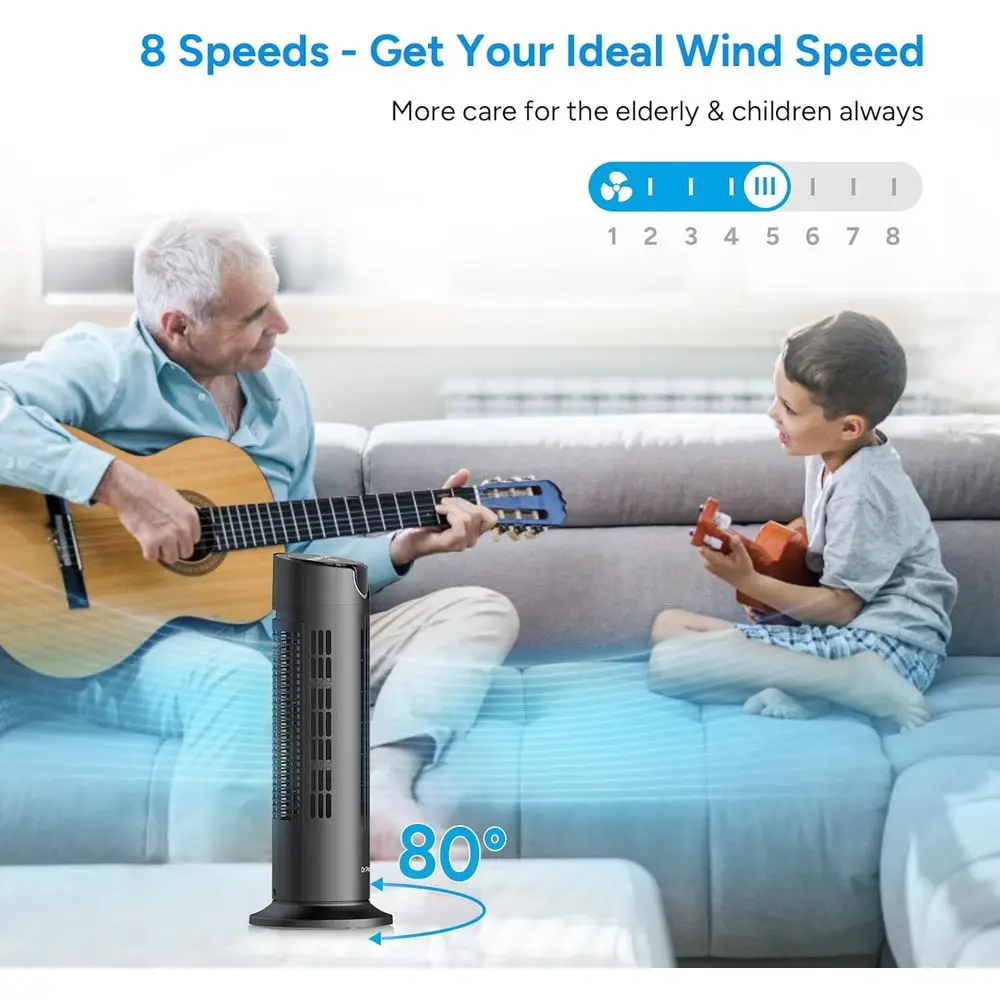 Designed for ultra-quiet cooling and high wind speeds, this tower fan operates at a low noise level of 25 dB, providing maximum comfort for your sound sleep. DC motors are known for their quiet operation, even after extended periods of use.