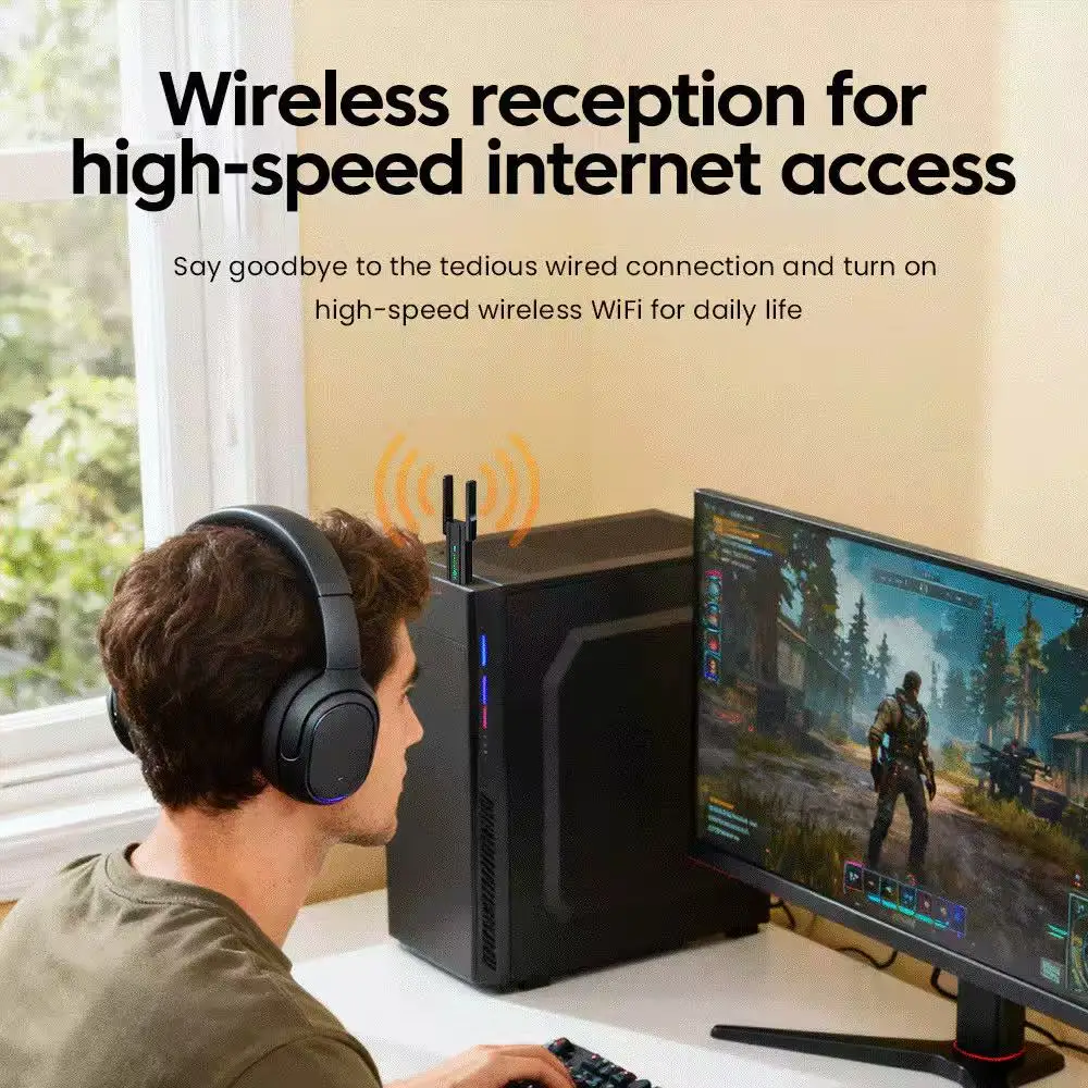 2.4/5.8G dual band transceiver, with a total speed of upto 1300M