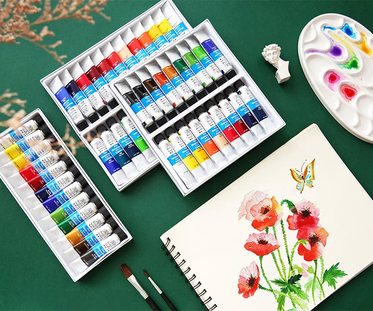 Although the packaging was slightly damaged (since it came from china), the colors are beautiful and the selection of 18 colors is adequate for most paintings.