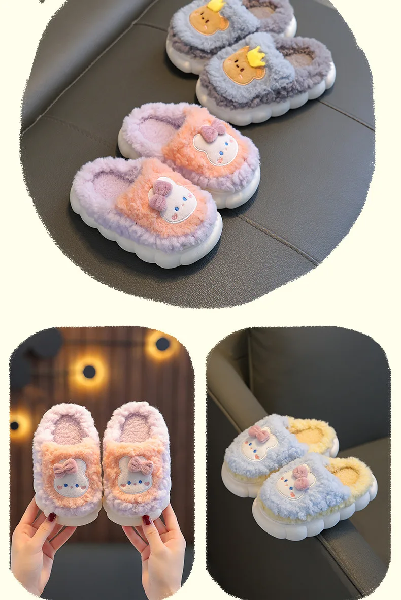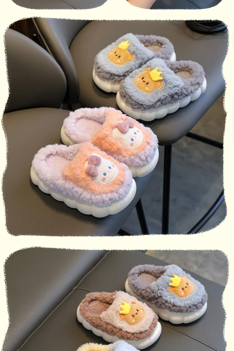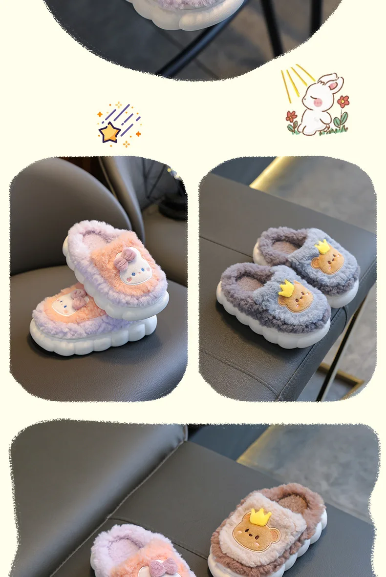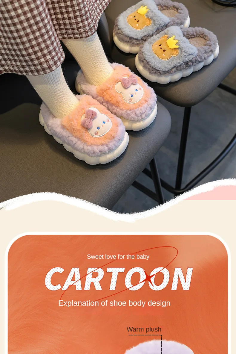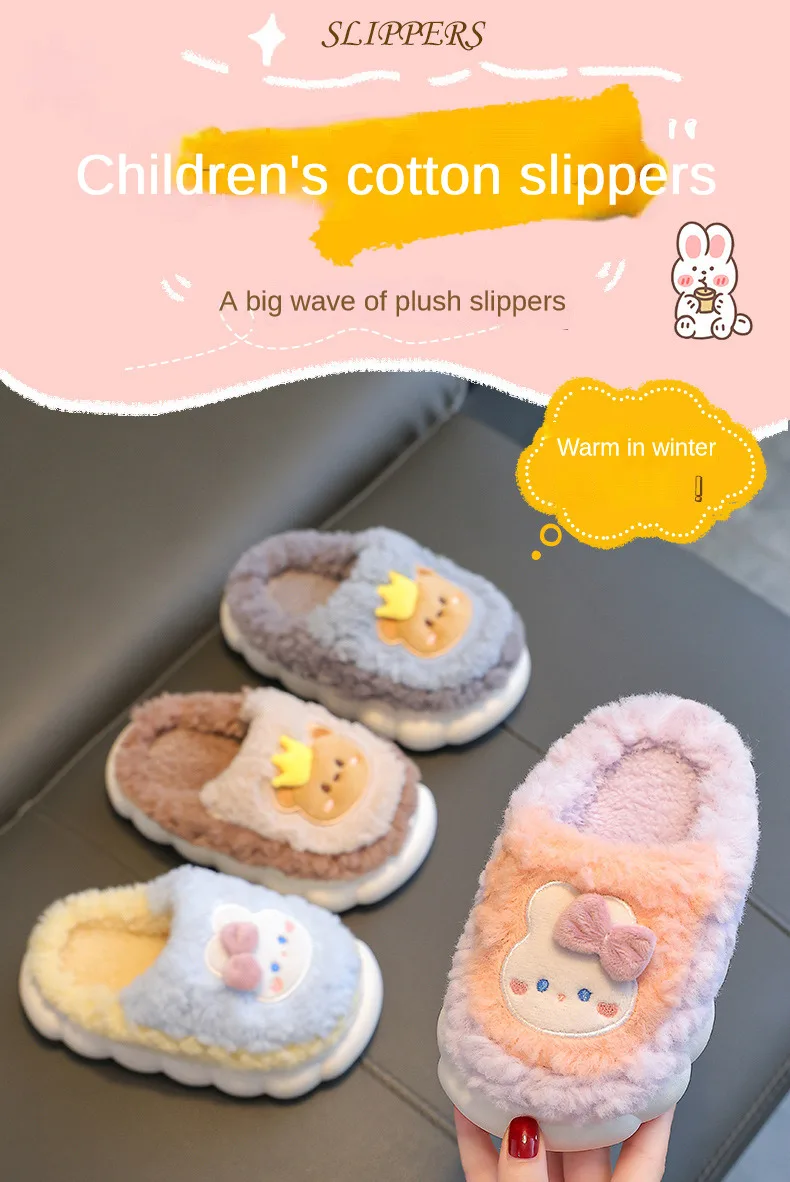Winter Children Cotton Slippers Girls Warm and Non Slip Plush Home Slippers 2-10 Years Old Boys Bag Heel Plush Slippers
