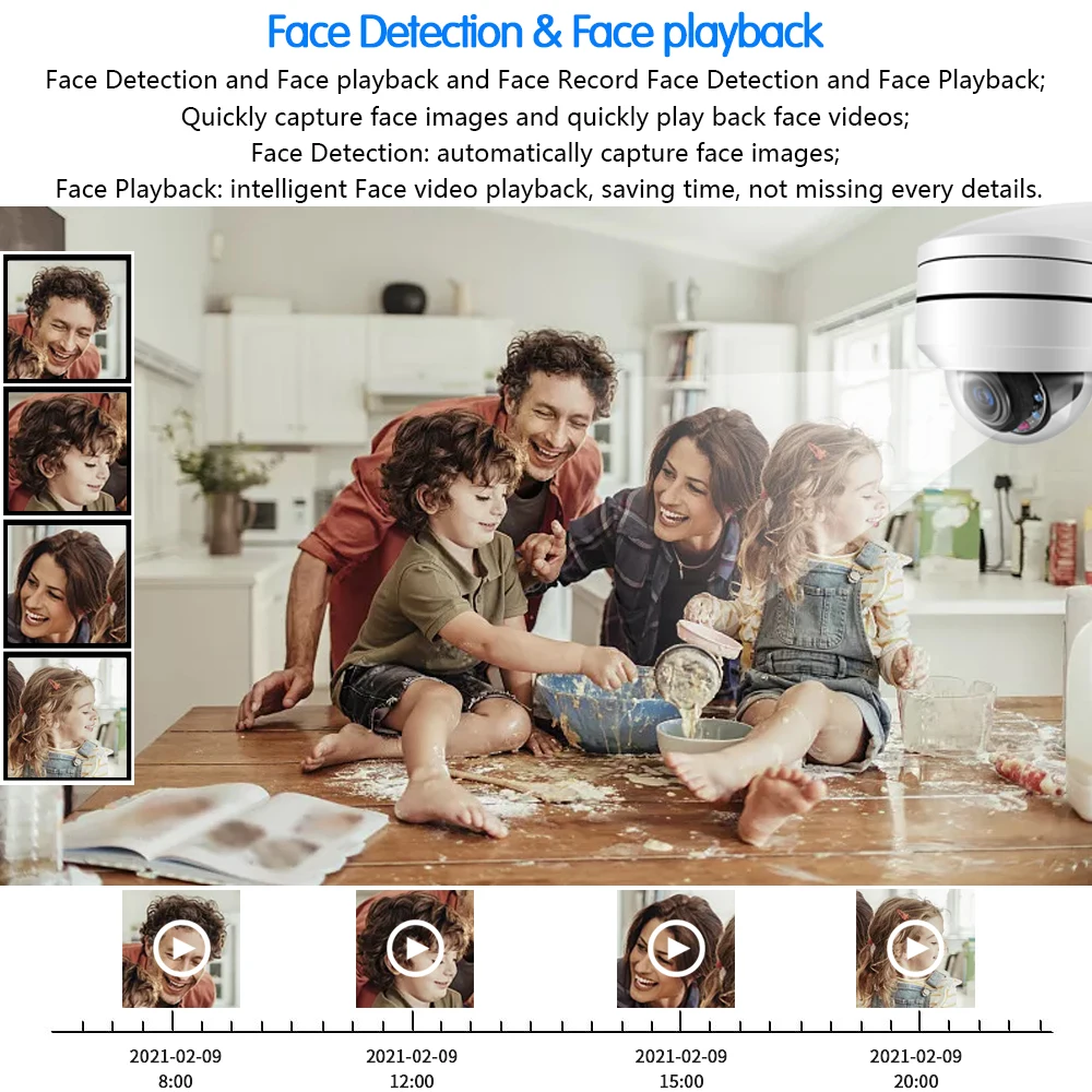 Face Detection and Face playback and Face Record;Quickly capture face images and quickly play back face videos;Face Detection:automatically capture face images;Face Playback:Intelligent Face video playback,saving time,not missing every details;