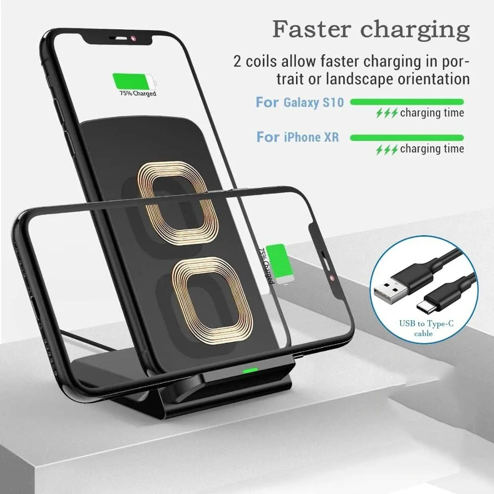 2-coil wireless pad charges your phone vertically or horizontally for the most ideal view and support when watching videos, listening to