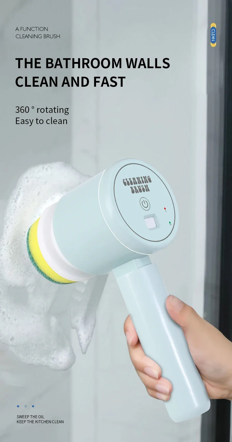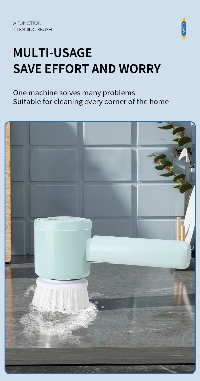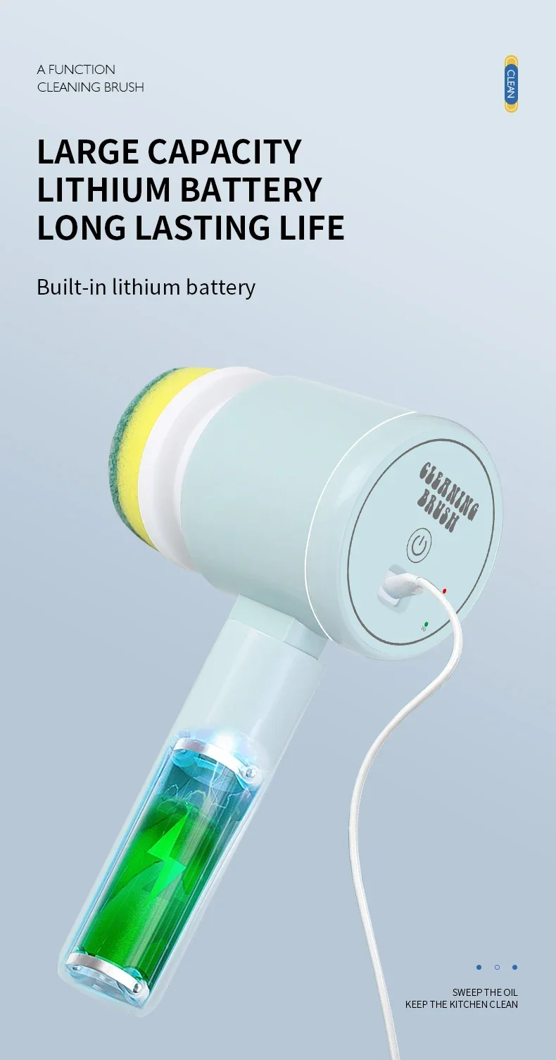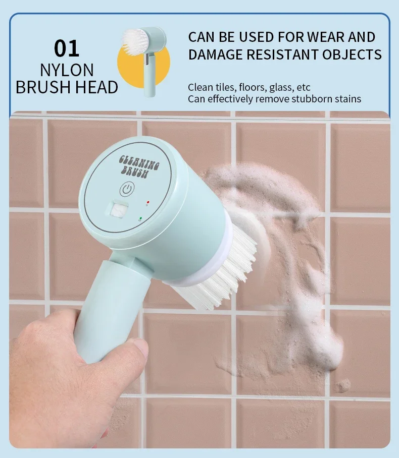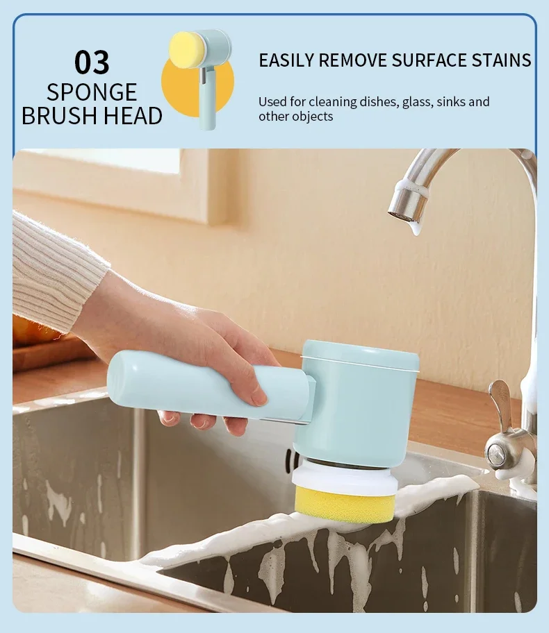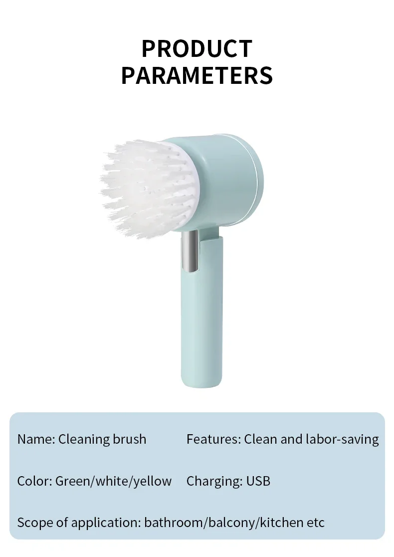 4. Various brush heads. Nylon brush head, sponge brush head, and sponge cleaning cloth meet multiple cleaning needs.