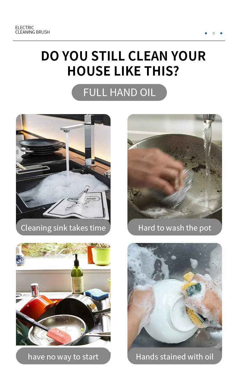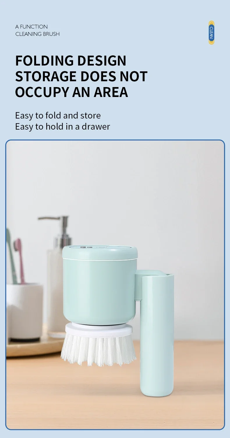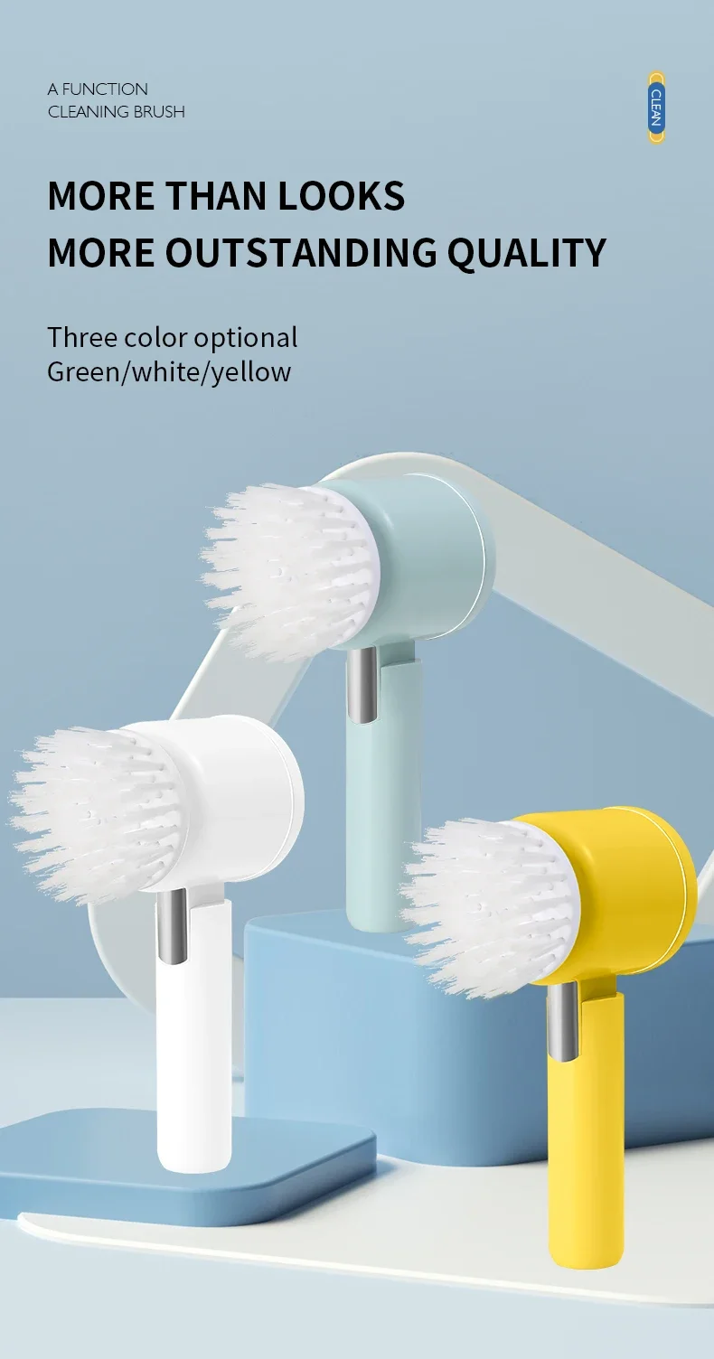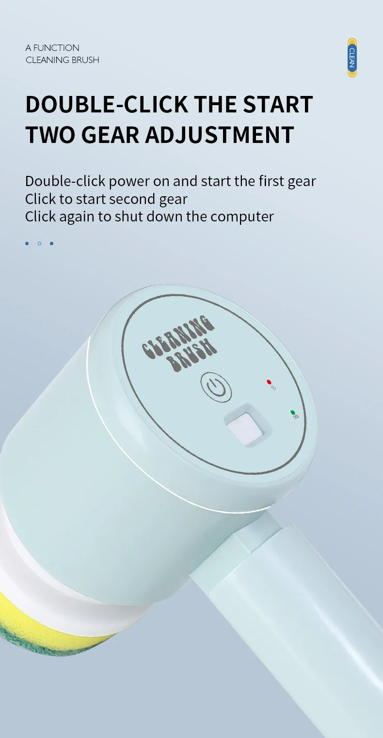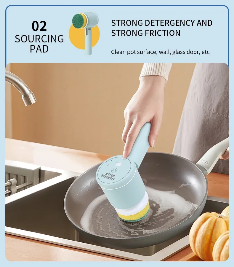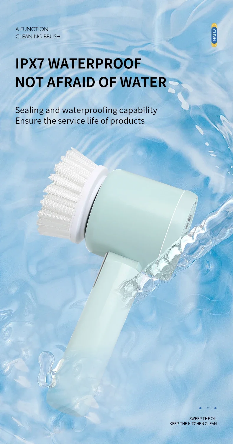 4. Various brush heads. Nylon brush head, sponge brush head, and sponge cleaning cloth meet multiple cleaning needs.