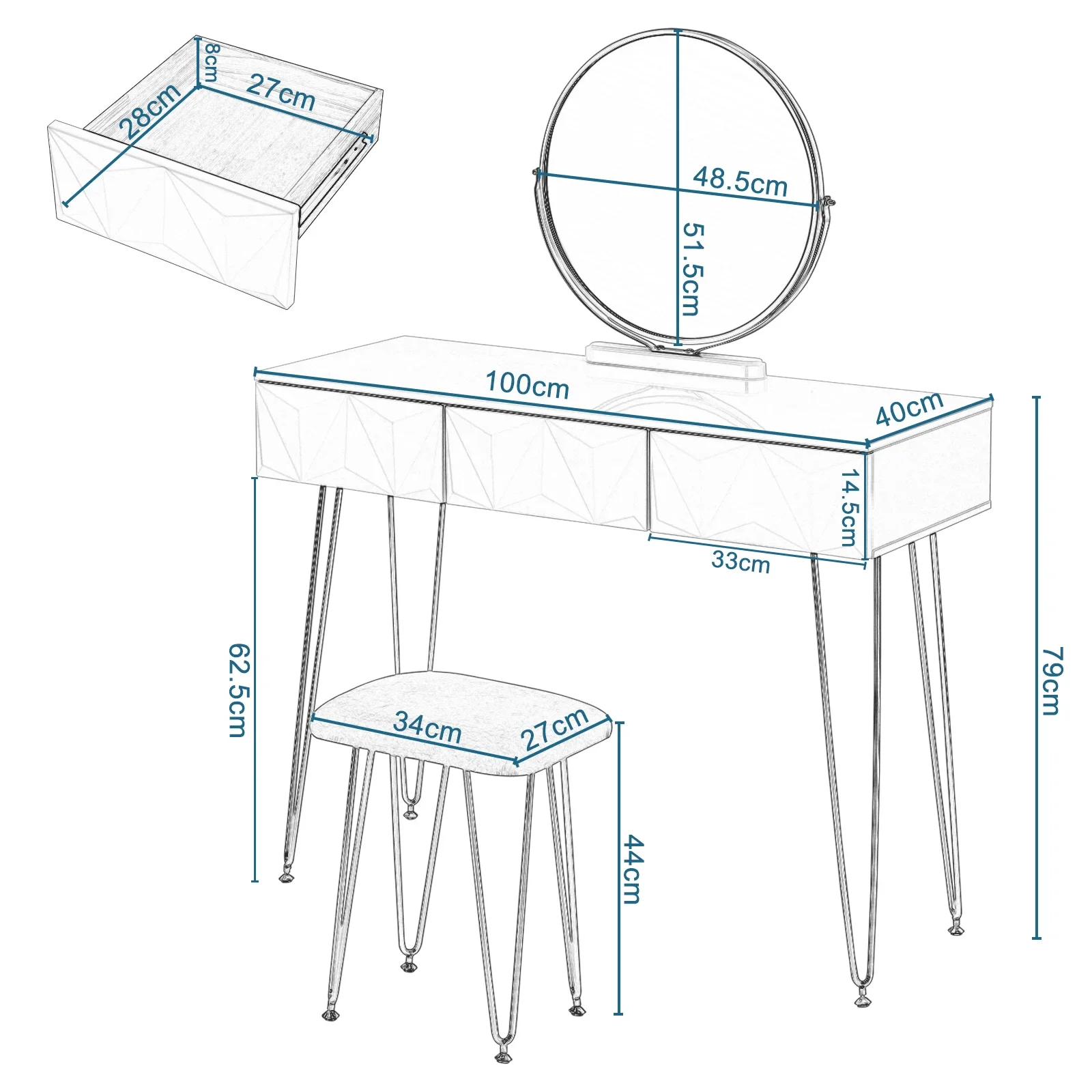 - Model Number: Dressing Table Set With Mirror Stool