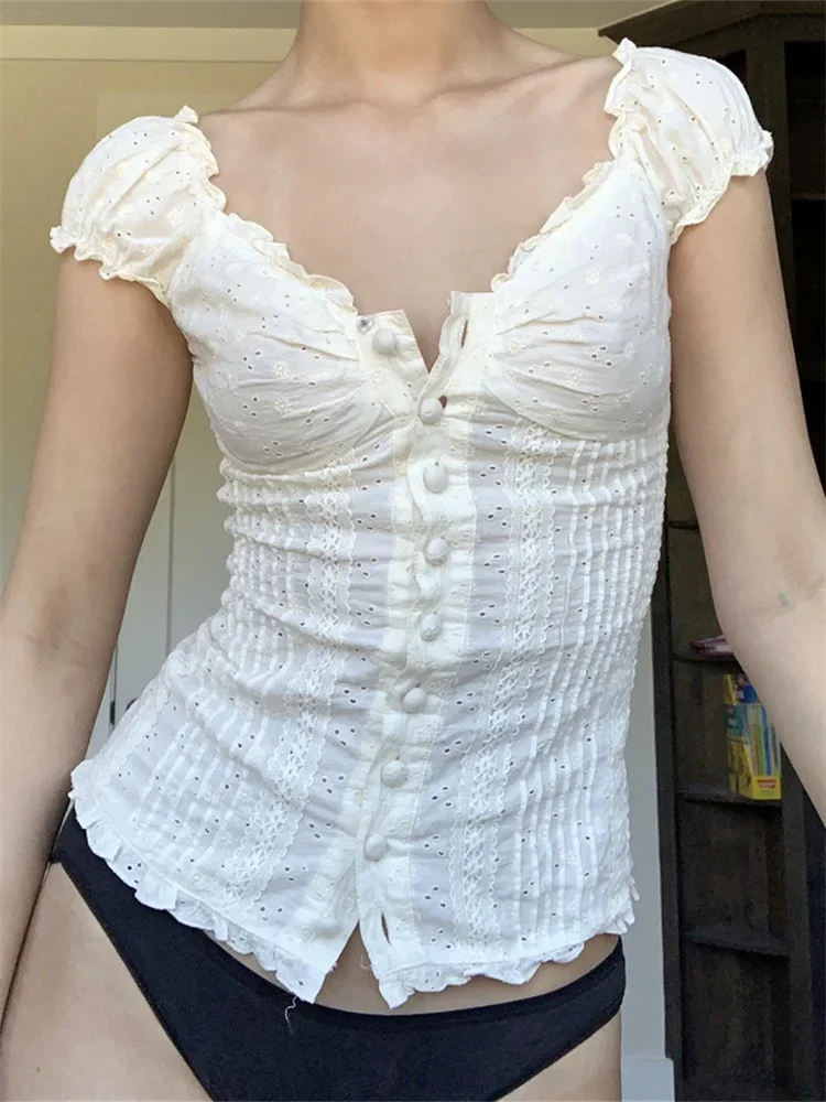Beautiful blouse, just like the picture, the abdomen part is semi-transparent and the button detail is very cute, it comes with a safety clasp on the chest button.