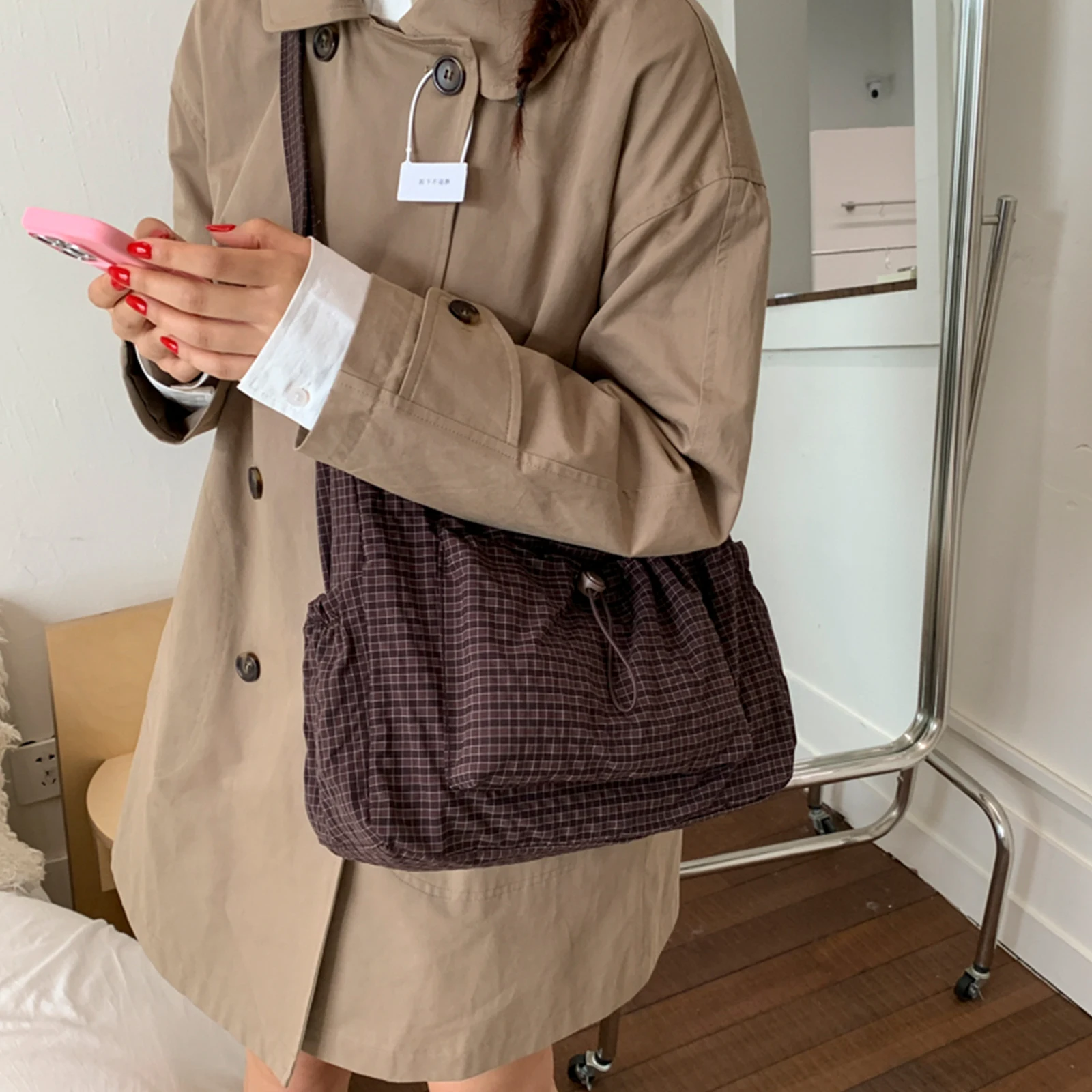 Features: 1.Premium Material: Crafted using high-quality nylon, this checkered sling bag features a soft, comfortable feel and excellent durability, providing a sense of safety and reassurance for daily use or travel. 2.Spacious Design: With dimensions of 330.00×230.00×110.00mm/12.99×9.06×4.33 in, this drawstring crossbody bag can easily hold your phone, headphones, lipstick, wallet, and more, making it ideal for commuting and travel. 3.Fashionable & Functional: This pleated cloud shoulder bag combines trendy Korean plaid style with functional large capacity, offering a soft and comfortable experience for a great blend of fashion and practicality. 4.Versatile Use: Whether shopping, dating, commuting, traveling, on vacation, attending parties, or working, this stylish plaid tote bag adapts effortlessly to any occasion and keeps you elegantly organized. 5.Thoughtful Gift Choice: Surprise someone special with this trendy satchel bag, an ideal present for Mother’s Day, Women’s Day, Valentine’s Day, birthdays, or Christmas, expressing your love and gratitude timelessly.