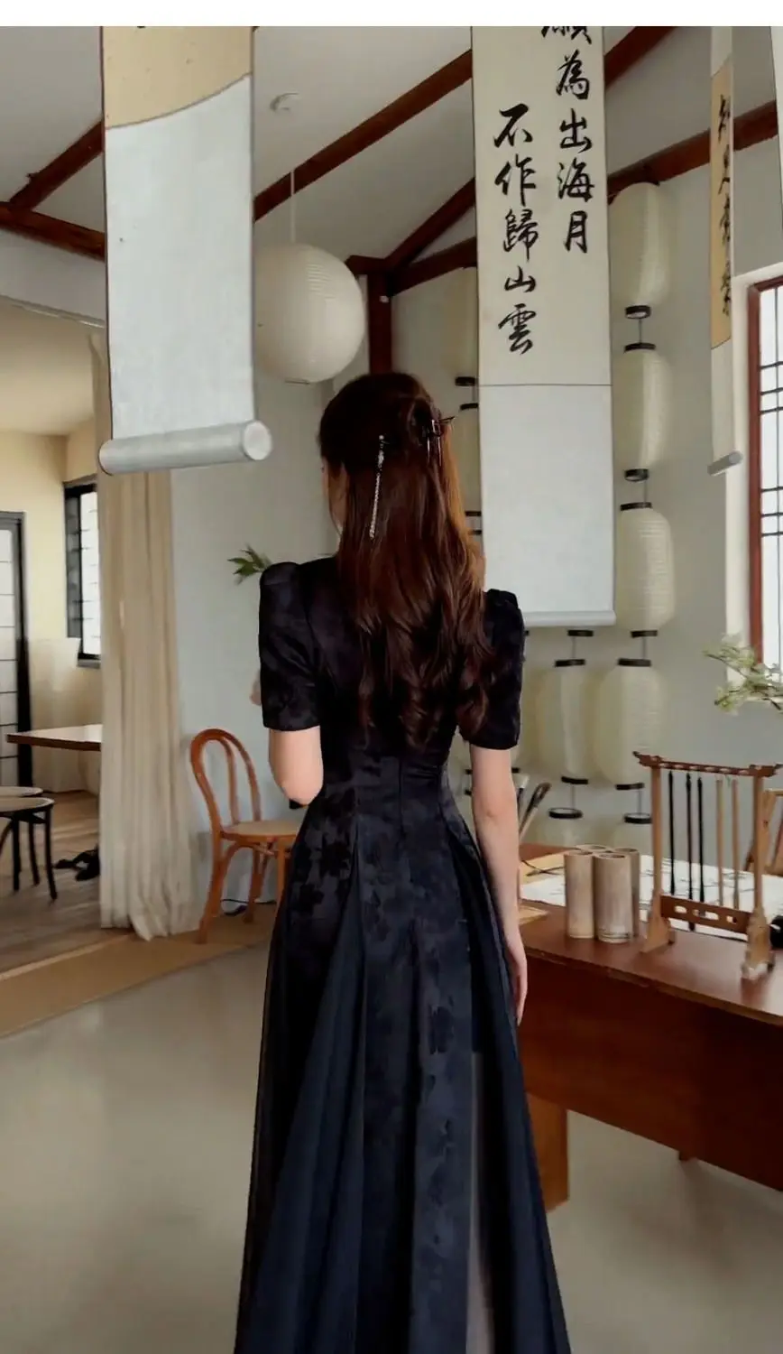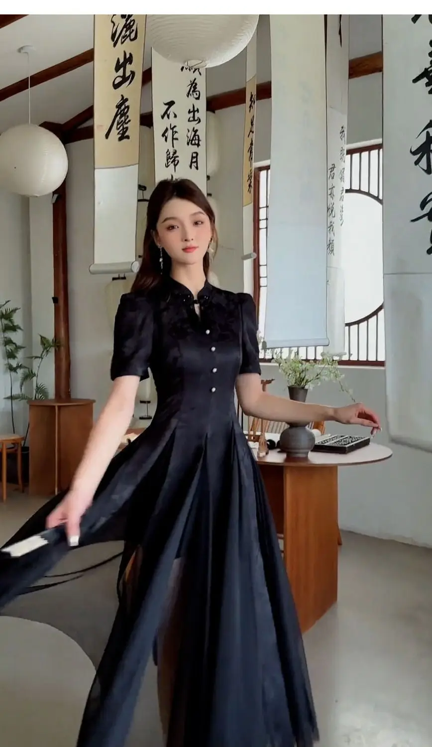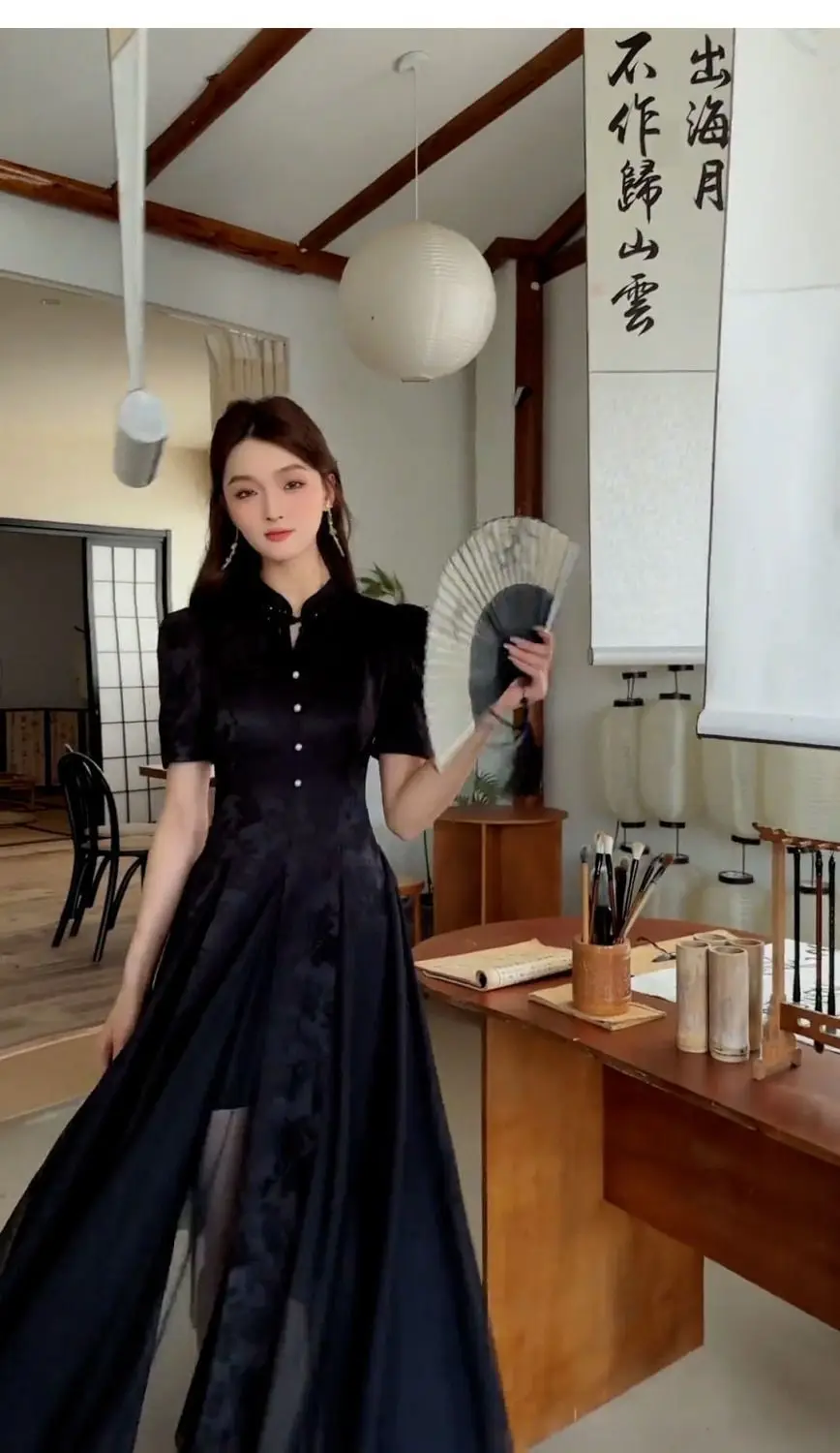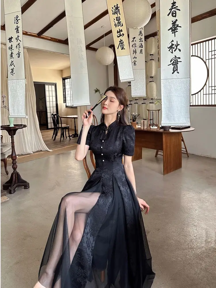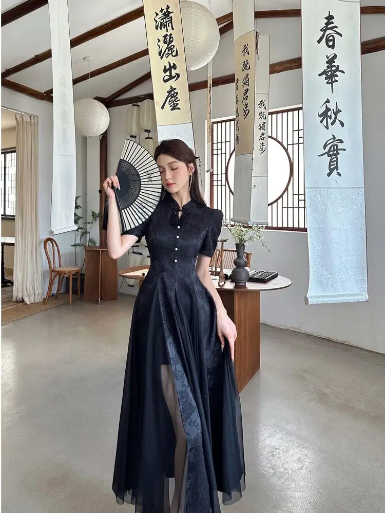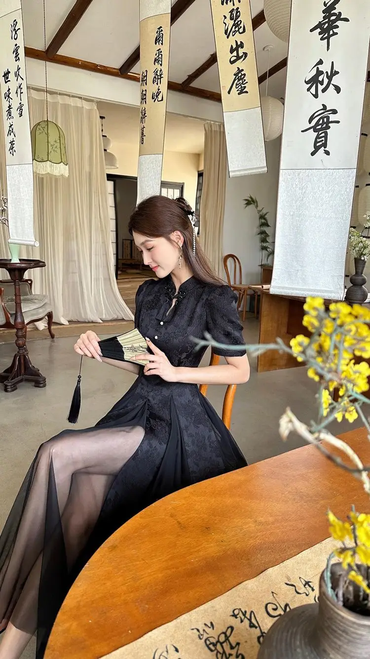 Women Fashionable New Cheongsam Black Advanced Mysterious Dress Qipao Improvement New Chinese Style Elegant Dress Summer