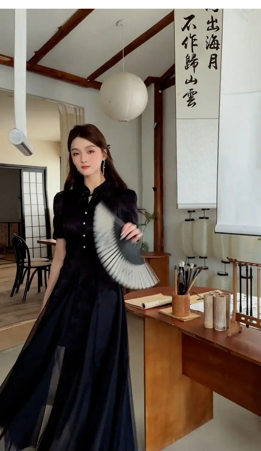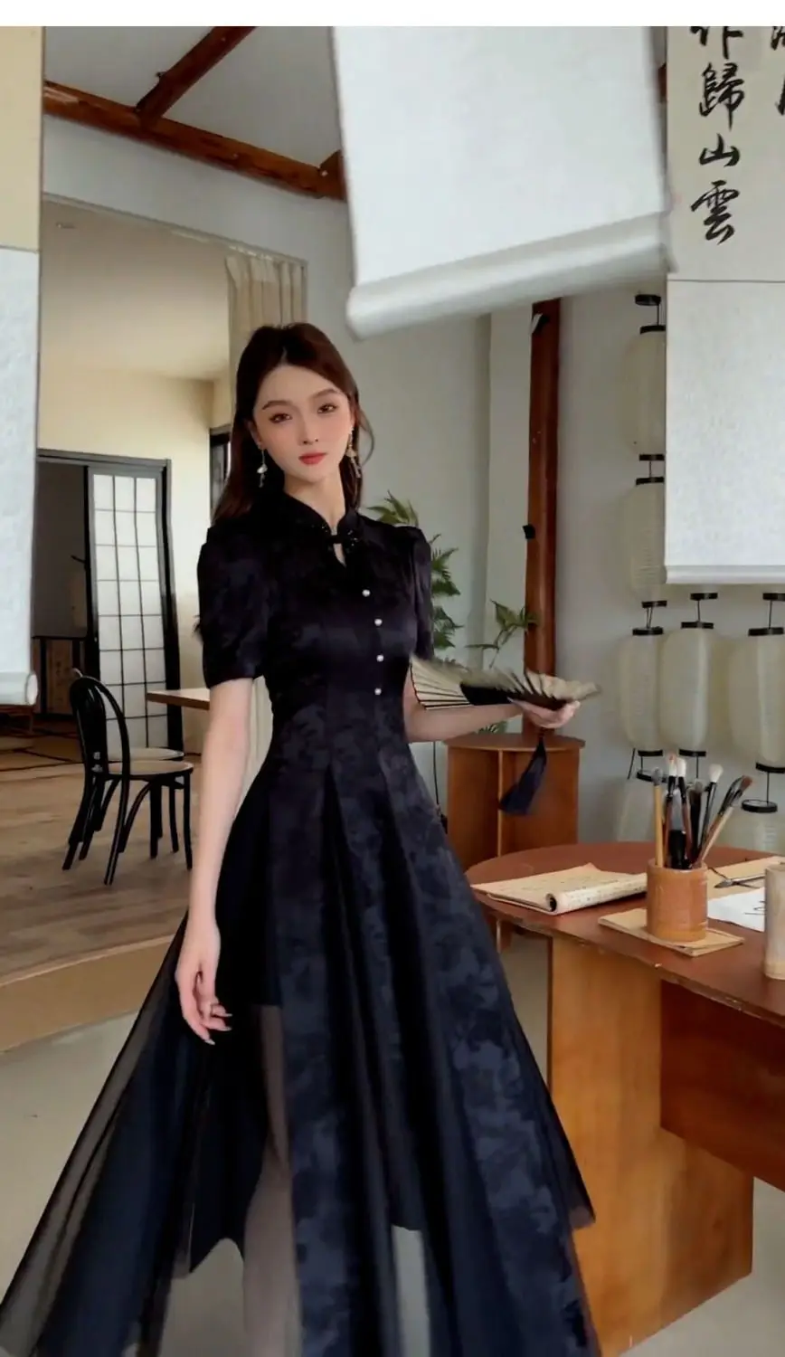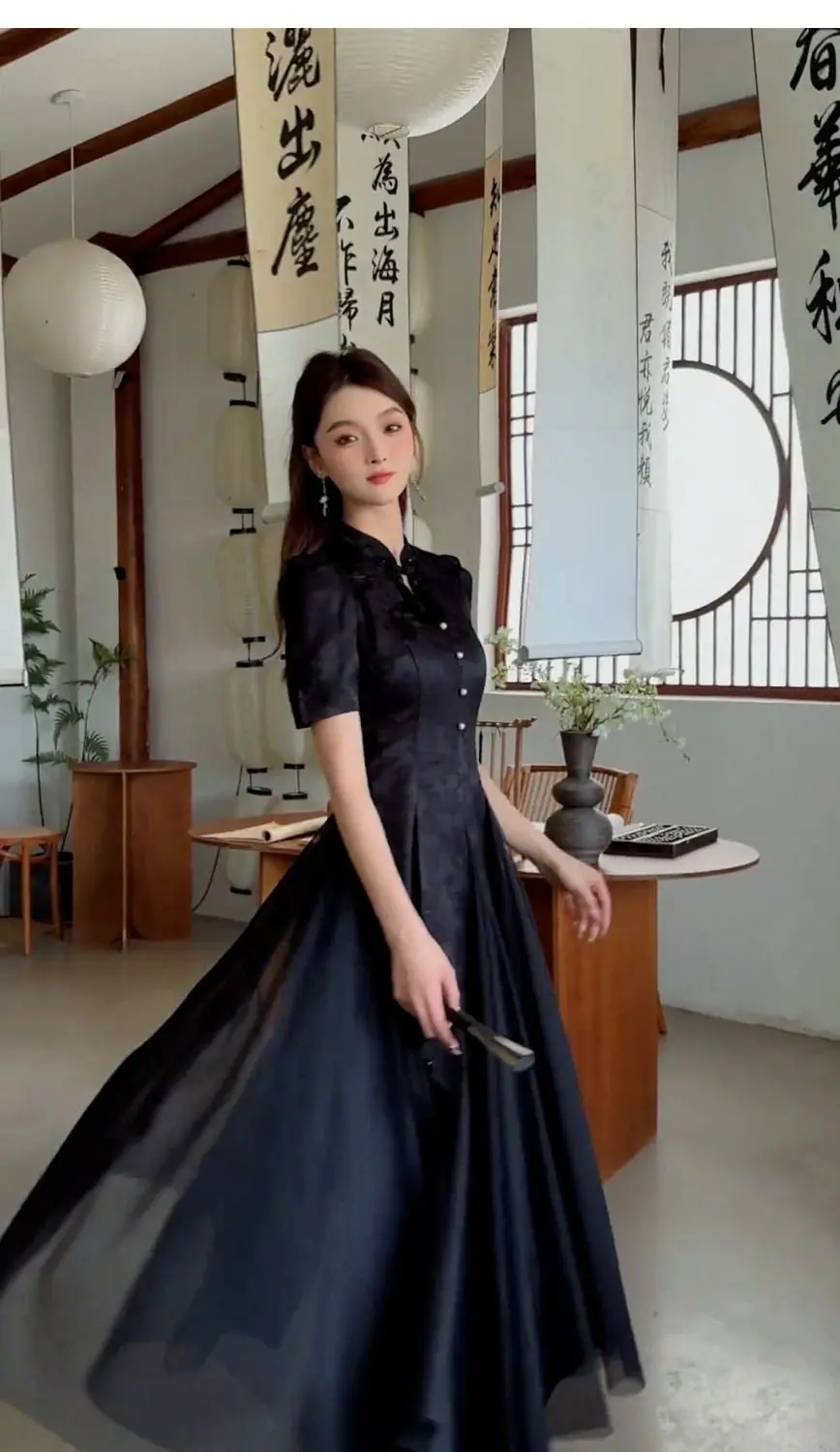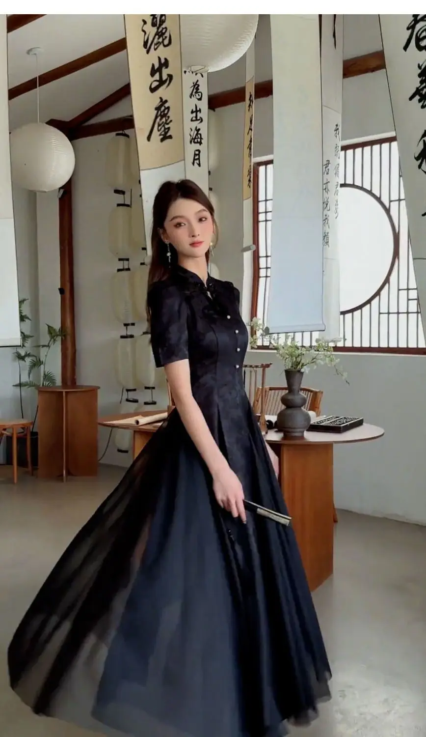 Women Fashionable New Cheongsam Black Advanced Mysterious Dress Qipao Improvement New Chinese Style Elegant Dress Summer