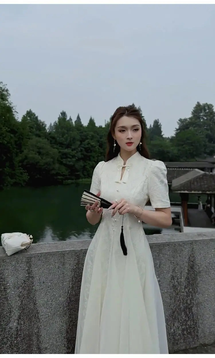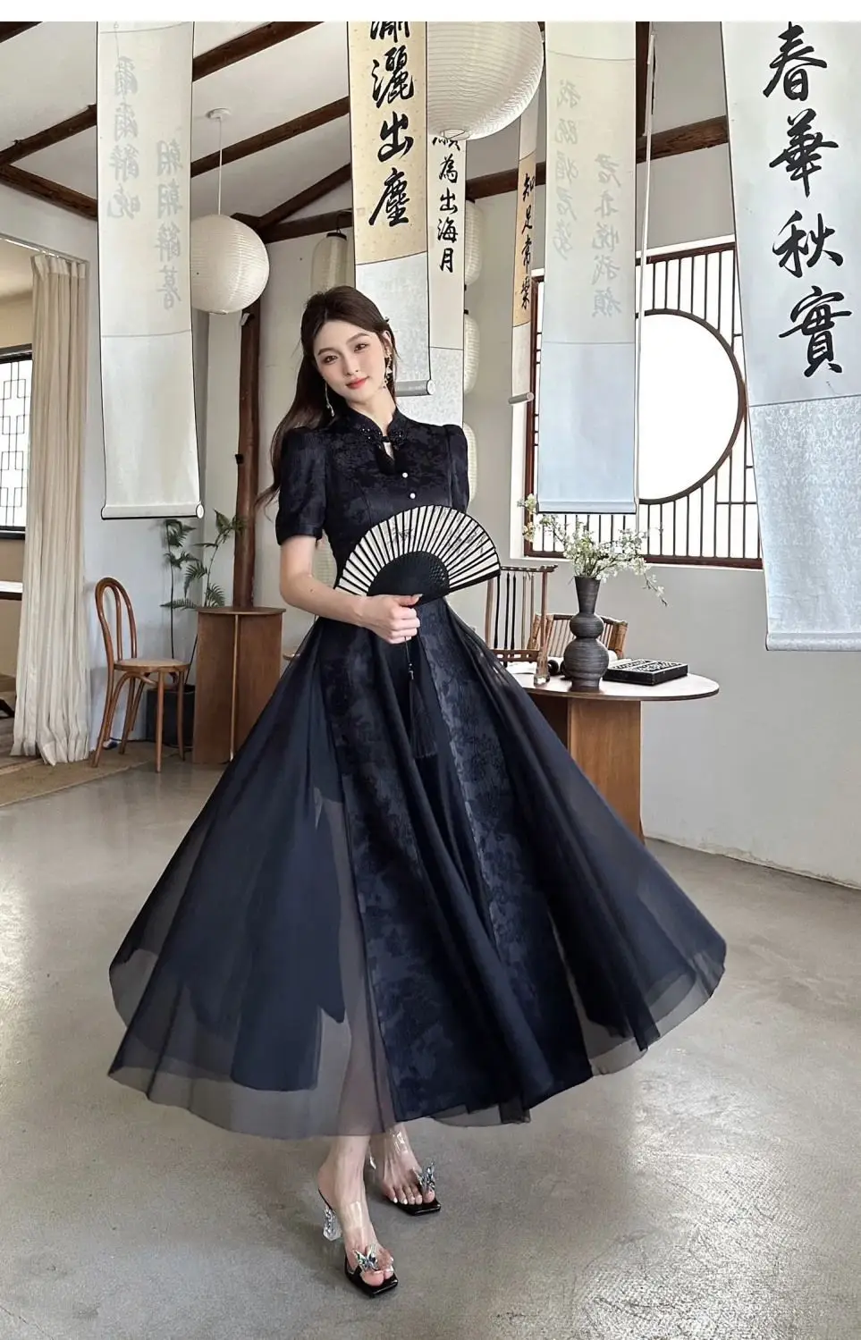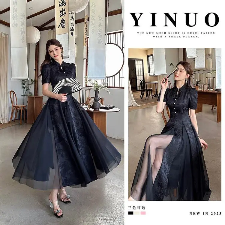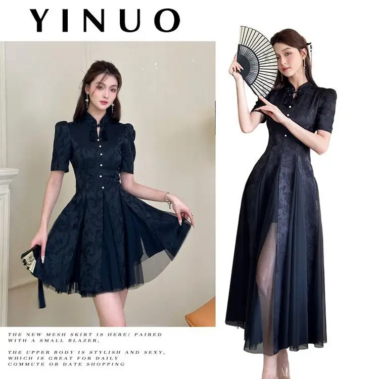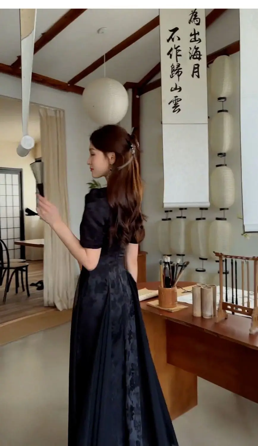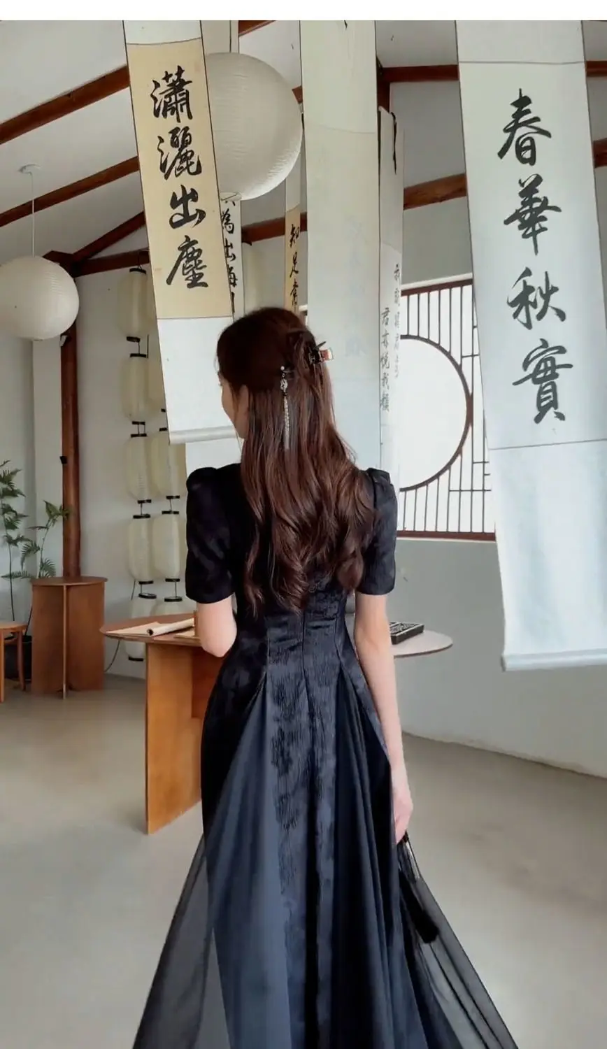 Women Fashionable New Cheongsam Black Advanced Mysterious Dress Qipao Improvement New Chinese Style Elegant Dress Summer