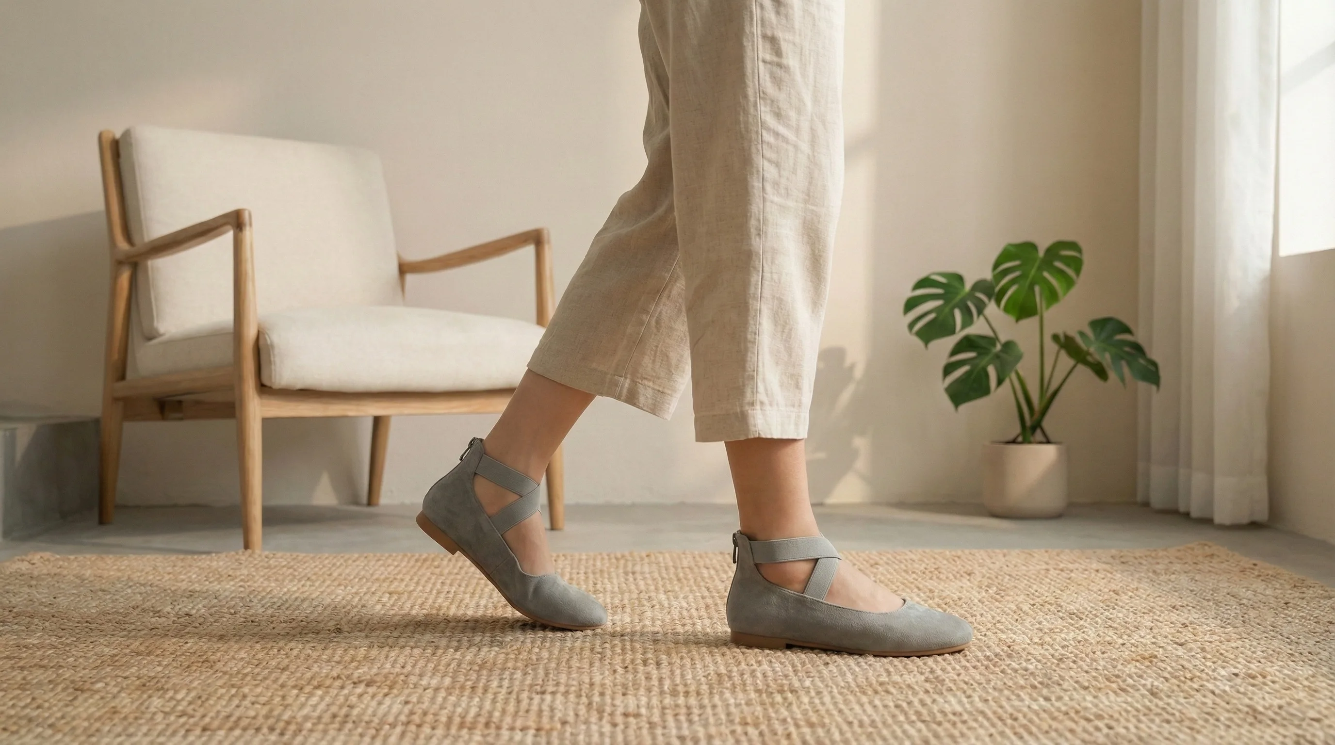 - with Elastic Ankle Straps: Dressy Ballerina Style