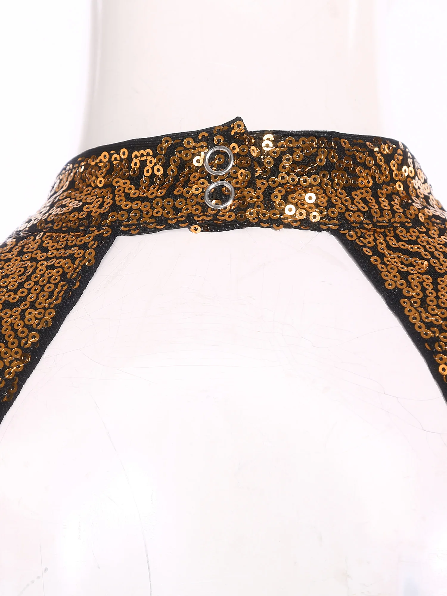 Sequins and rhinestones adorn the crop top, catching the light and making the dancer stand out on the stage.
