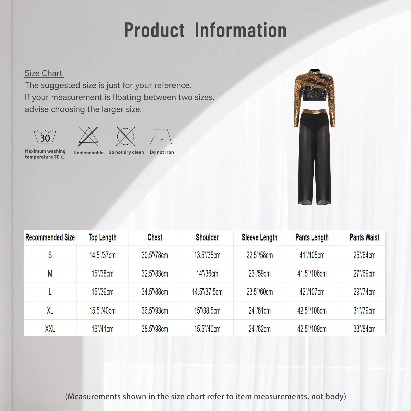 Size Chart: The suggested size is just for your reference. If your measurement is floating between two sizes, advise choosing the larger size. (Measurements shown in the size chart refer to item measurements, not body)