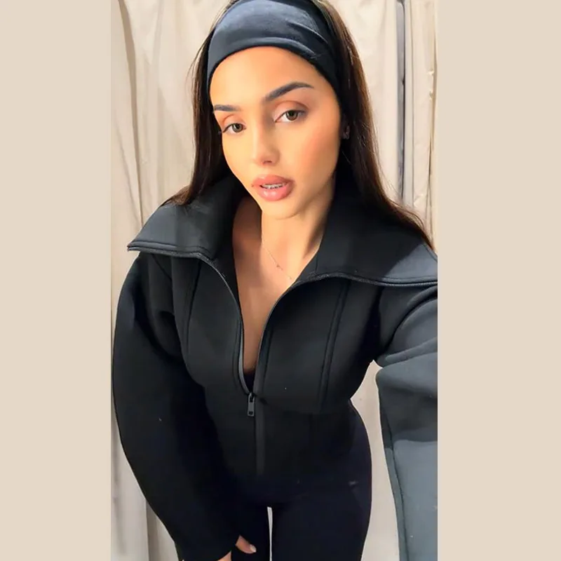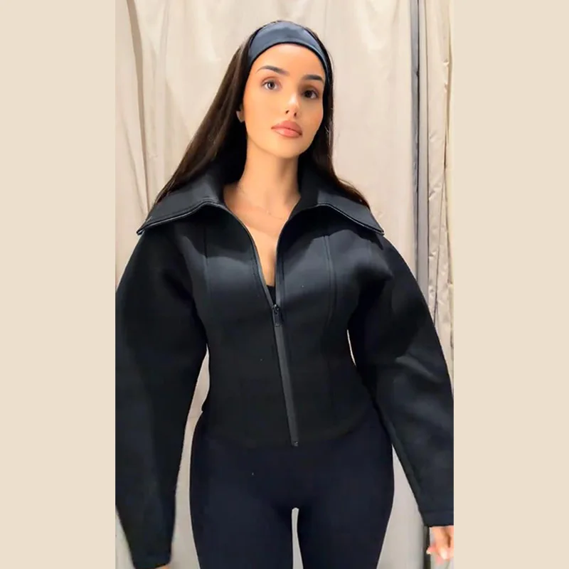 The jacket is sewn very neatly, and the color is trendy. It looks great with trousers, jeans, and skirts of any style! But it’s never warm. A fashionable and comfortable jacket! I recommend it!