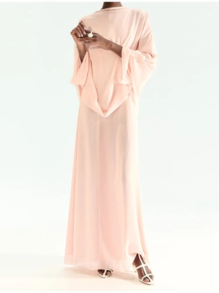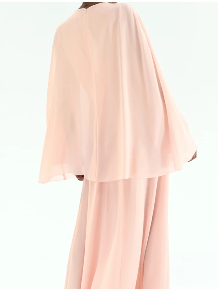 Cape Overlay: The loose, flowing cape overlay with batwing sleeves adds a dramatic, ethereal touch, creating movement and grace with every step.