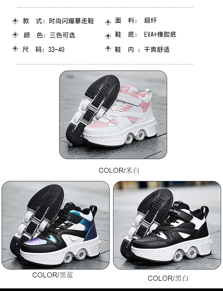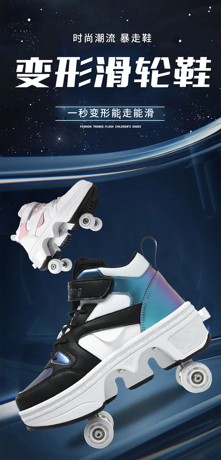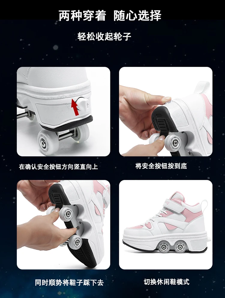 �� Put on our retractable skates and experience the thrill of skating. They go from regular shoes to roller skates in seconds, making them a completely multipurpose shoe, perfect for beginners and intermediate skaters.