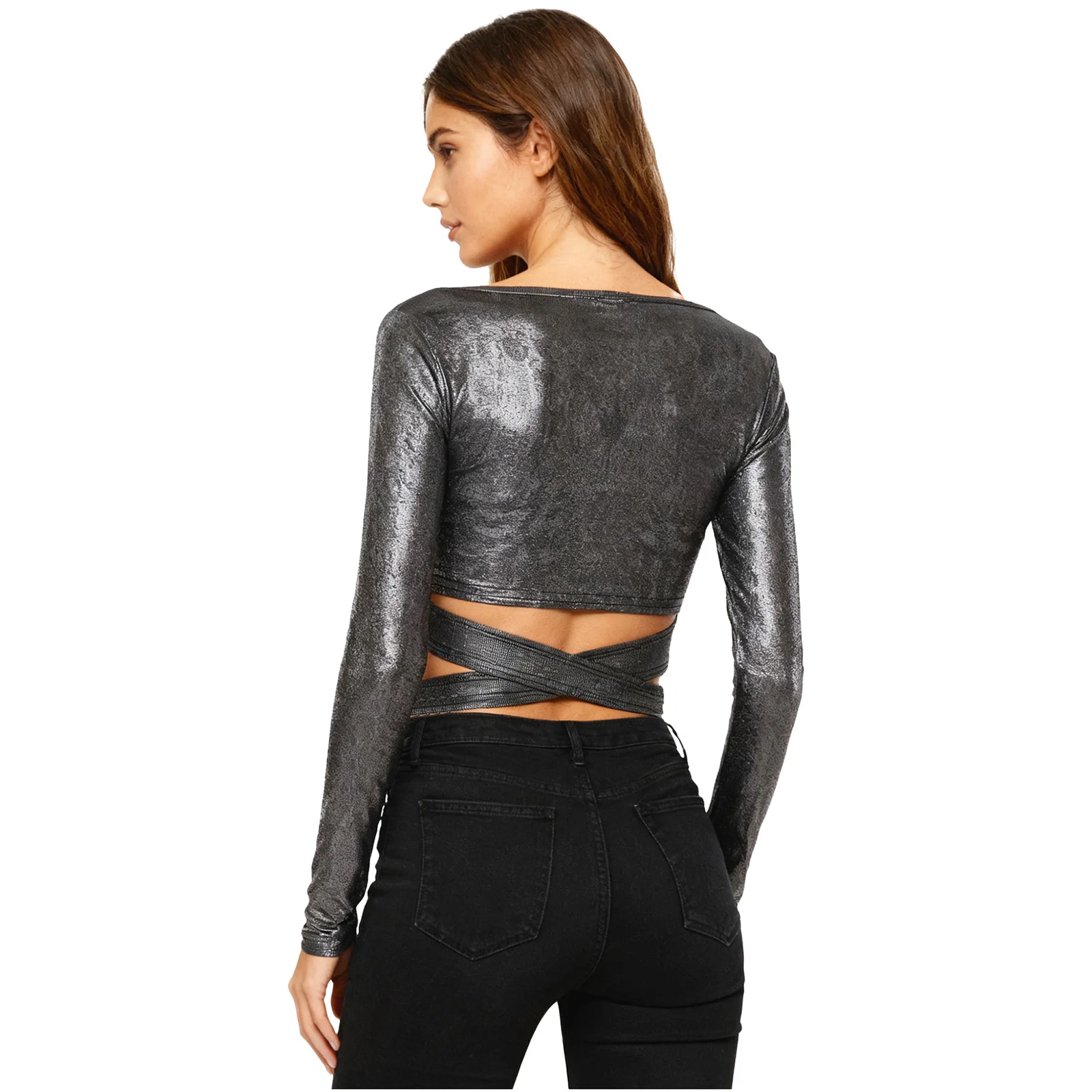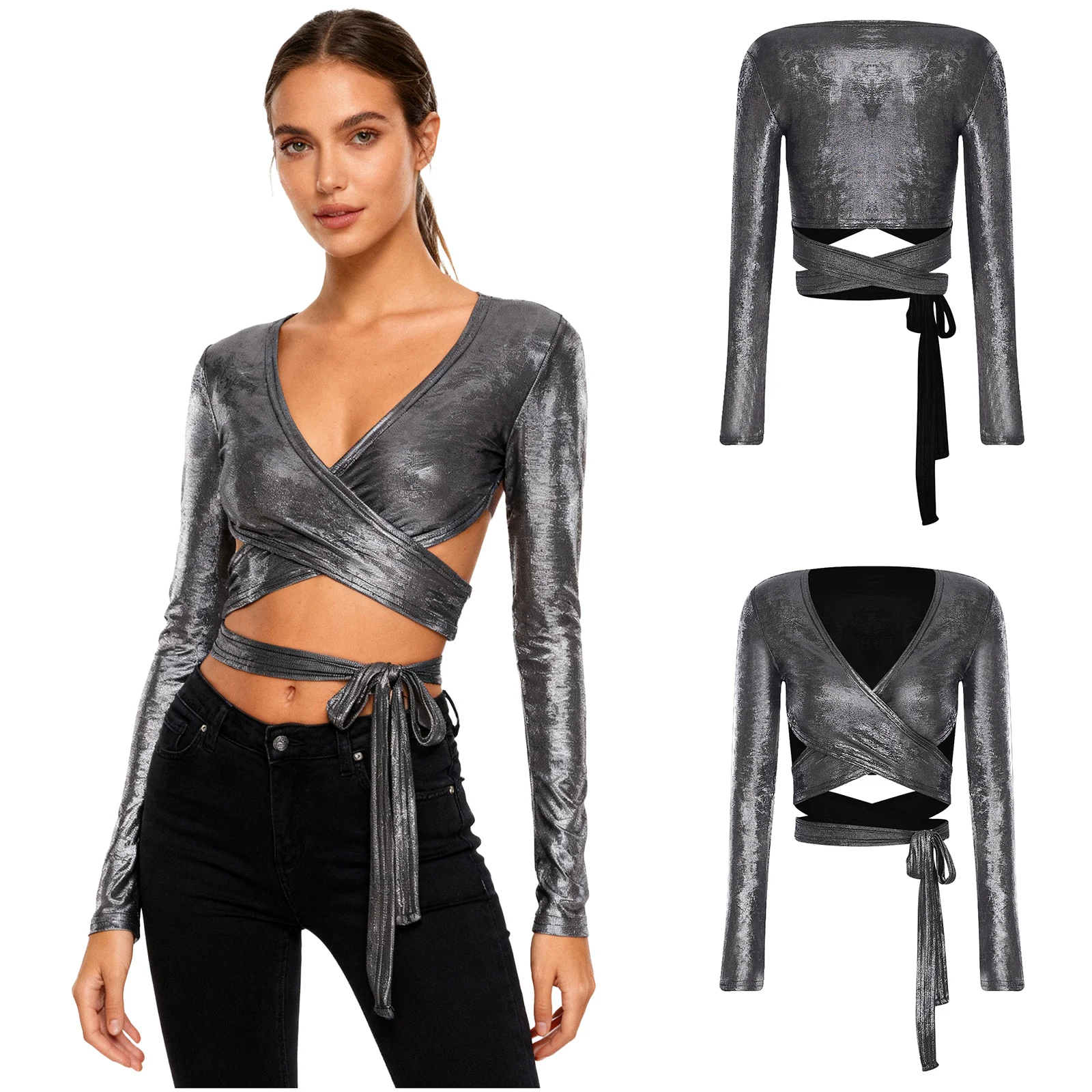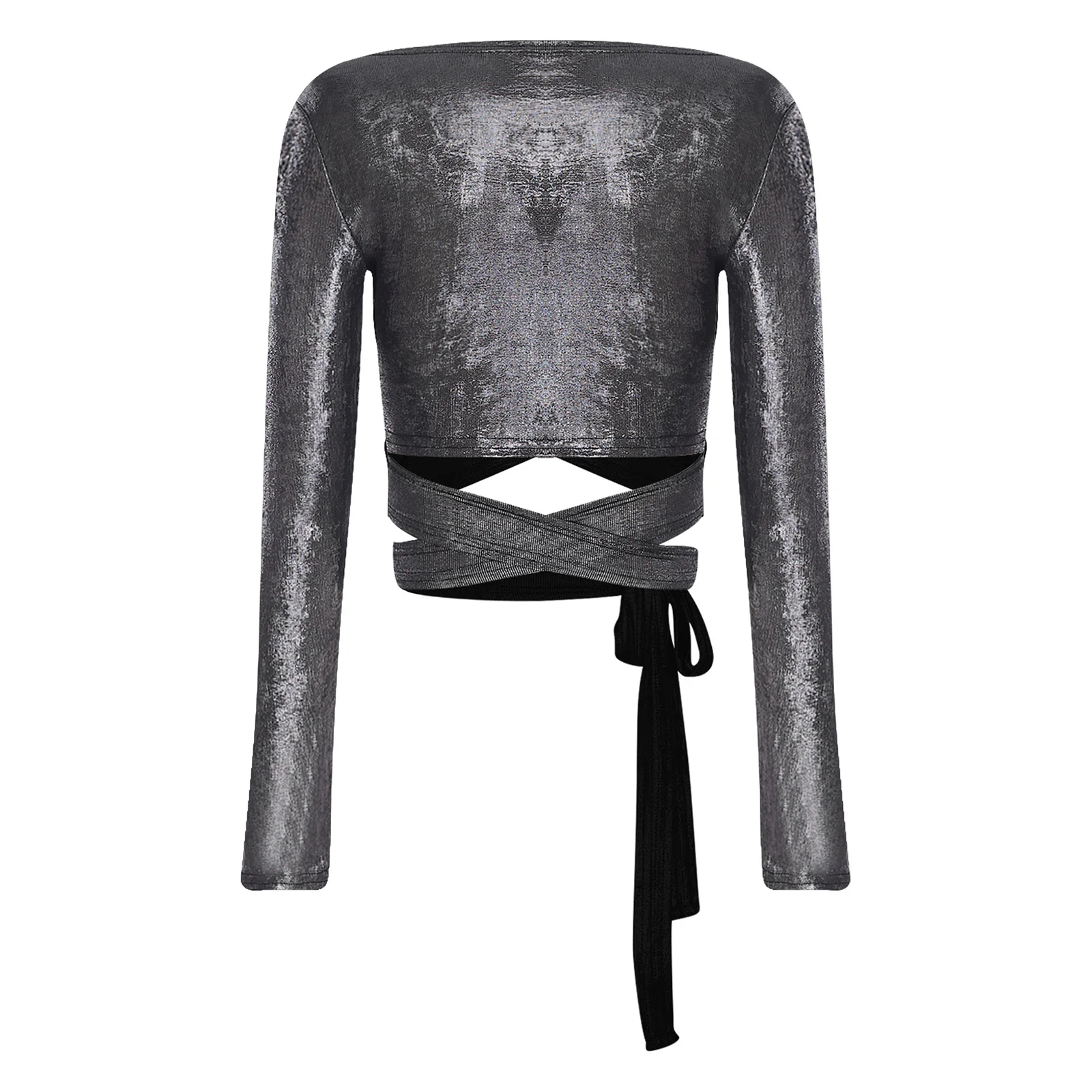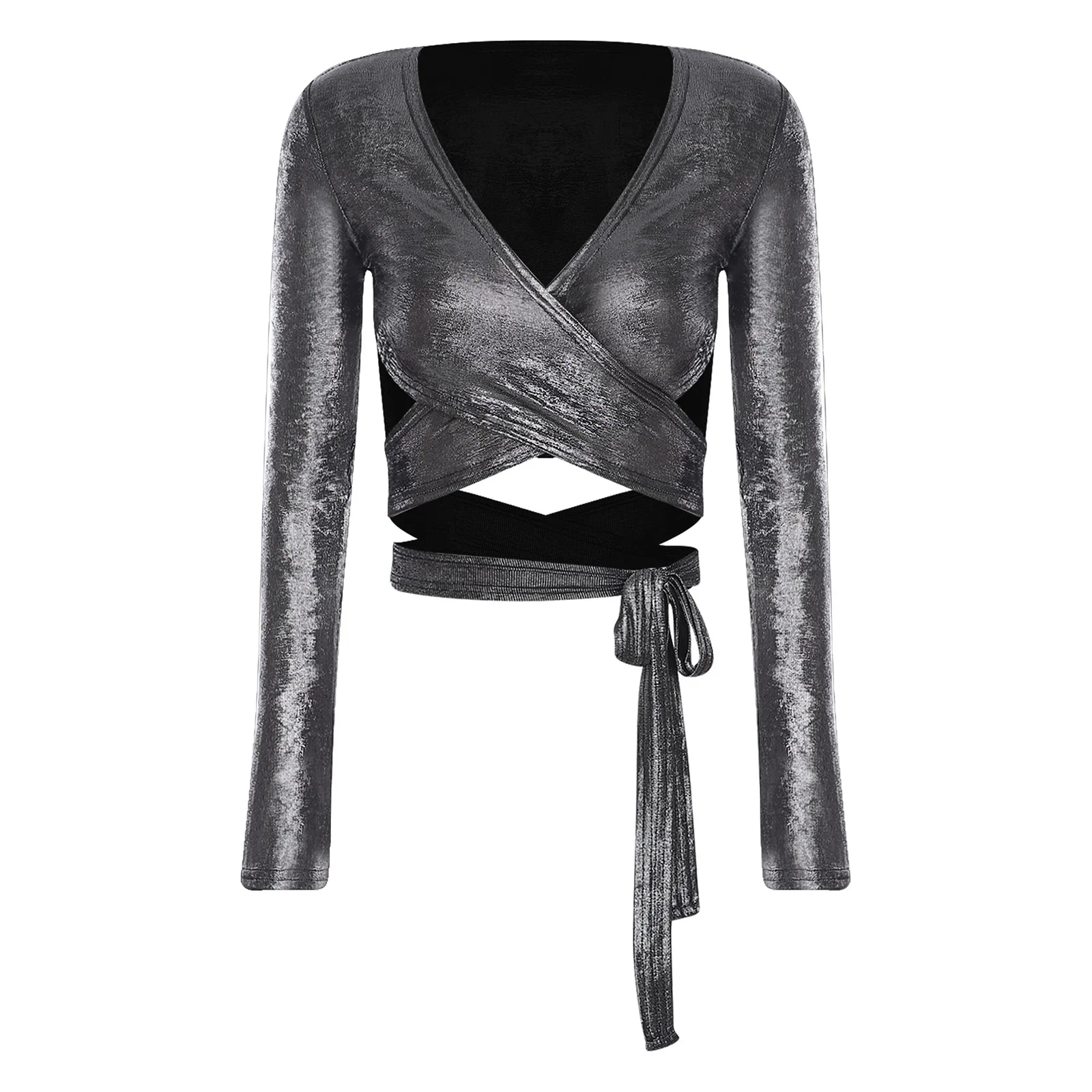 The shimmering effect of the top catches the light, creating a dazzling look that is perfect for stage performances, club nights, or rave festivals.