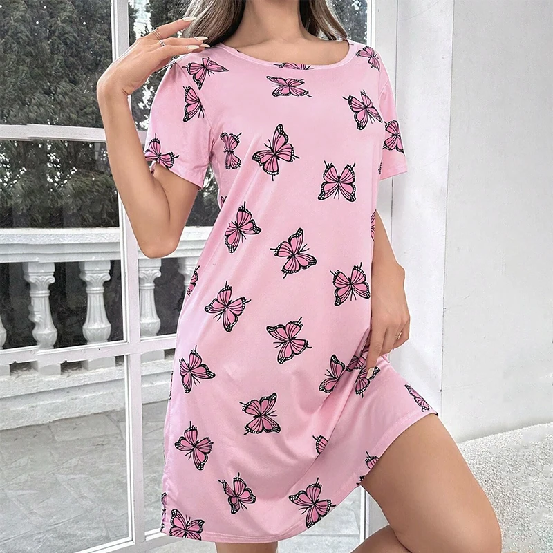 Features: Casual pajama dress design, short sleeves, round neck, Letter Print, t-shirt pajama, pullover style.