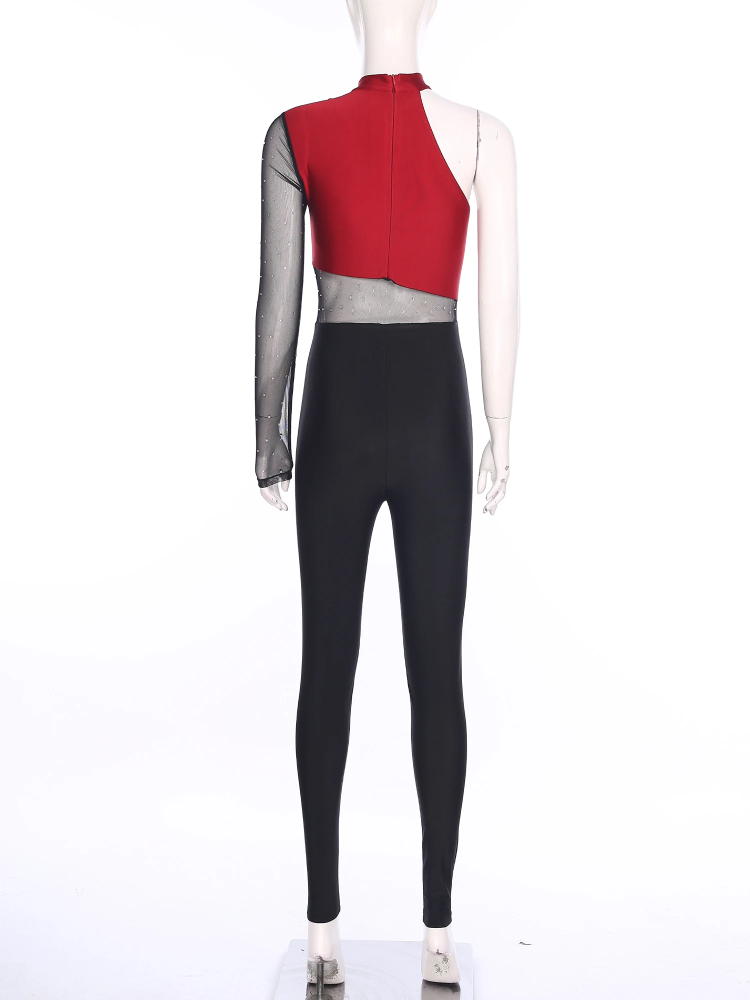 Women's long sleeve jumpsuit with one shoulder design, and back invisible zipper for easy wearing and taking off.