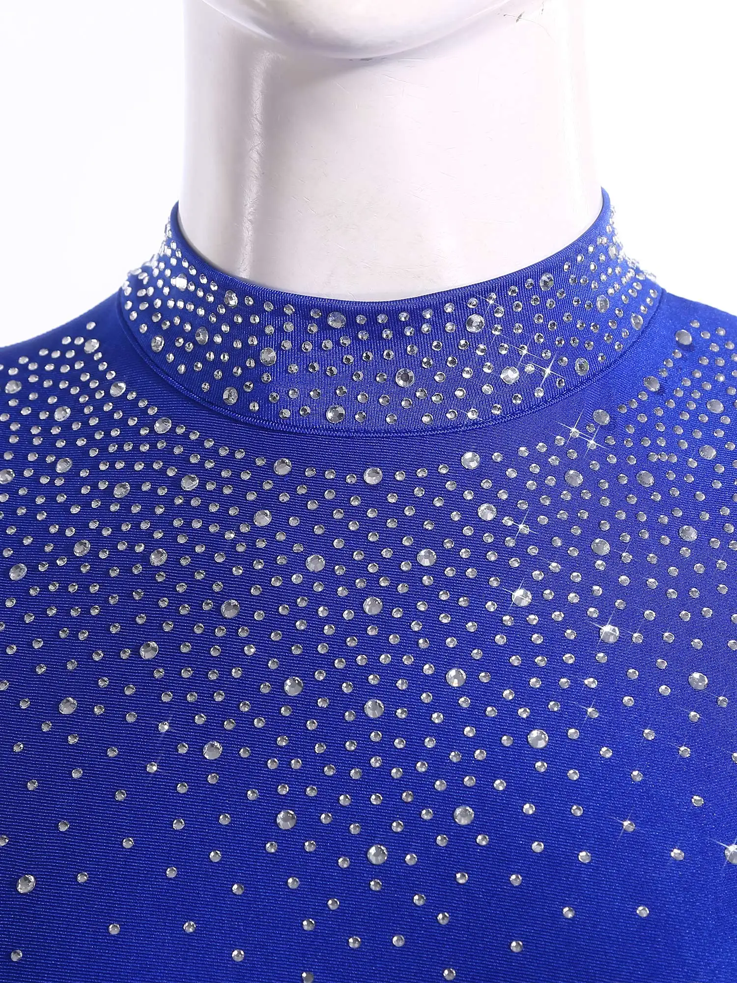 Made from a blend of polyester, spandex, and rhinestones, the unitard offers excellent stretch and a dazzling sparkle, ensuring a comfortable and eye-catching performance.