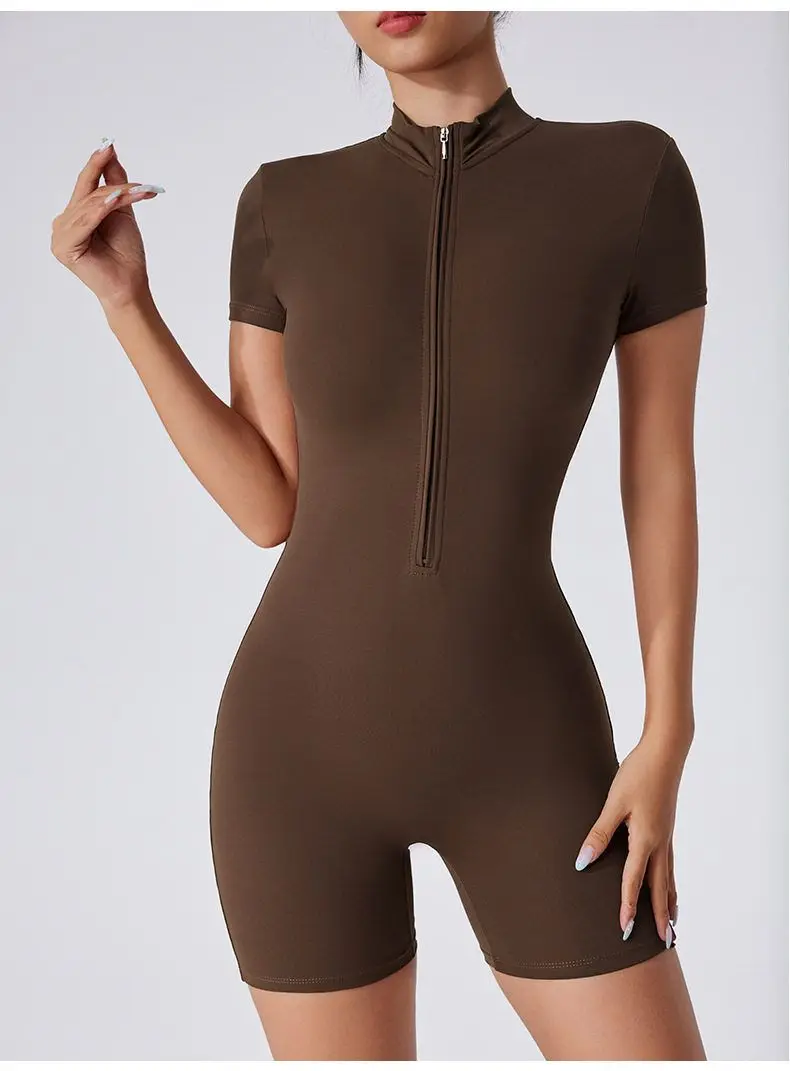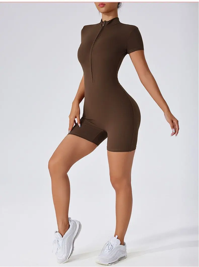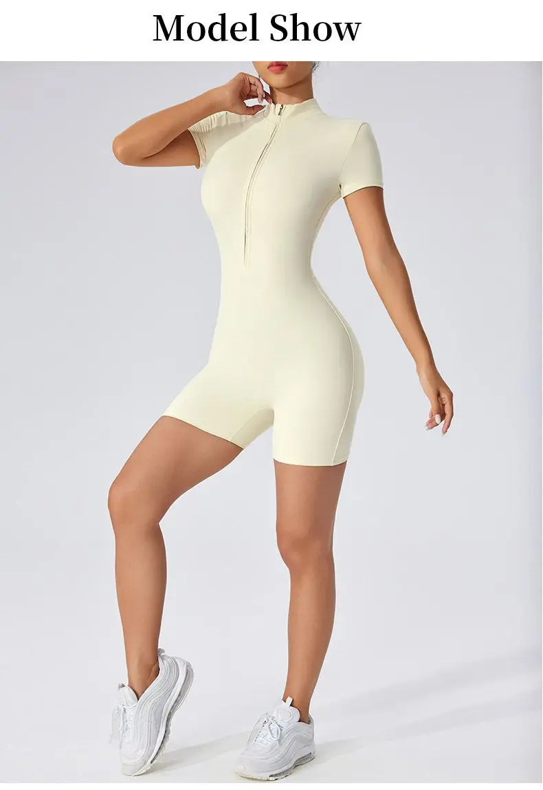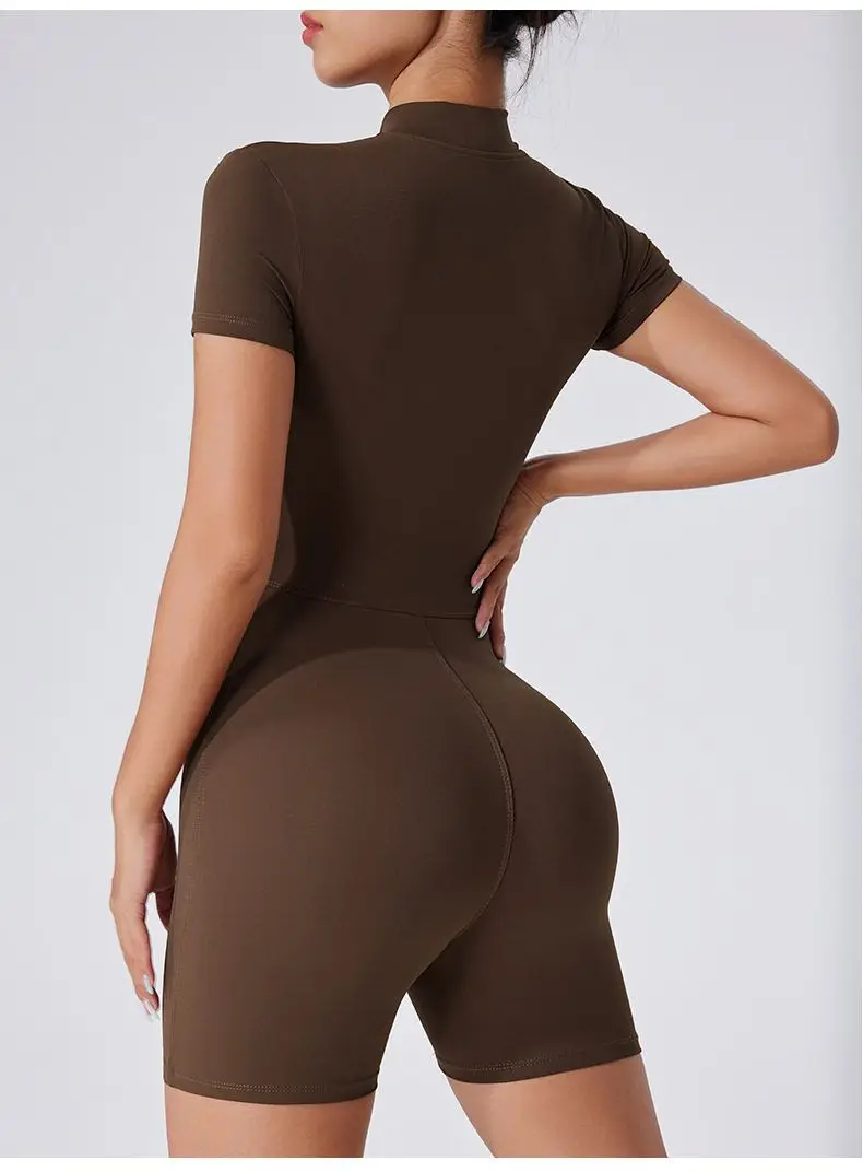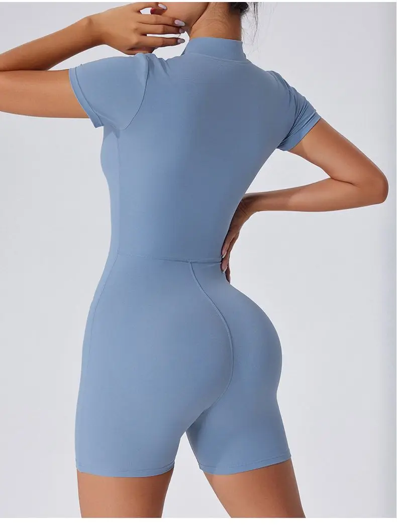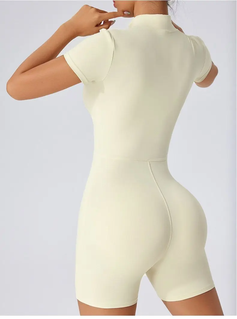 Inspired by European fashion, this short-sleeved onesie adds a touch of elegance to your workout wardrobe.