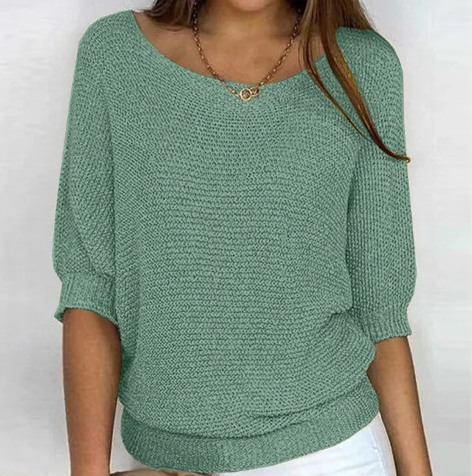 Women's Sweater Pullover Temperament Commuting Winter Tops Solid Color Round Neck Three Quarter Sleeve Knitted Sweater Top