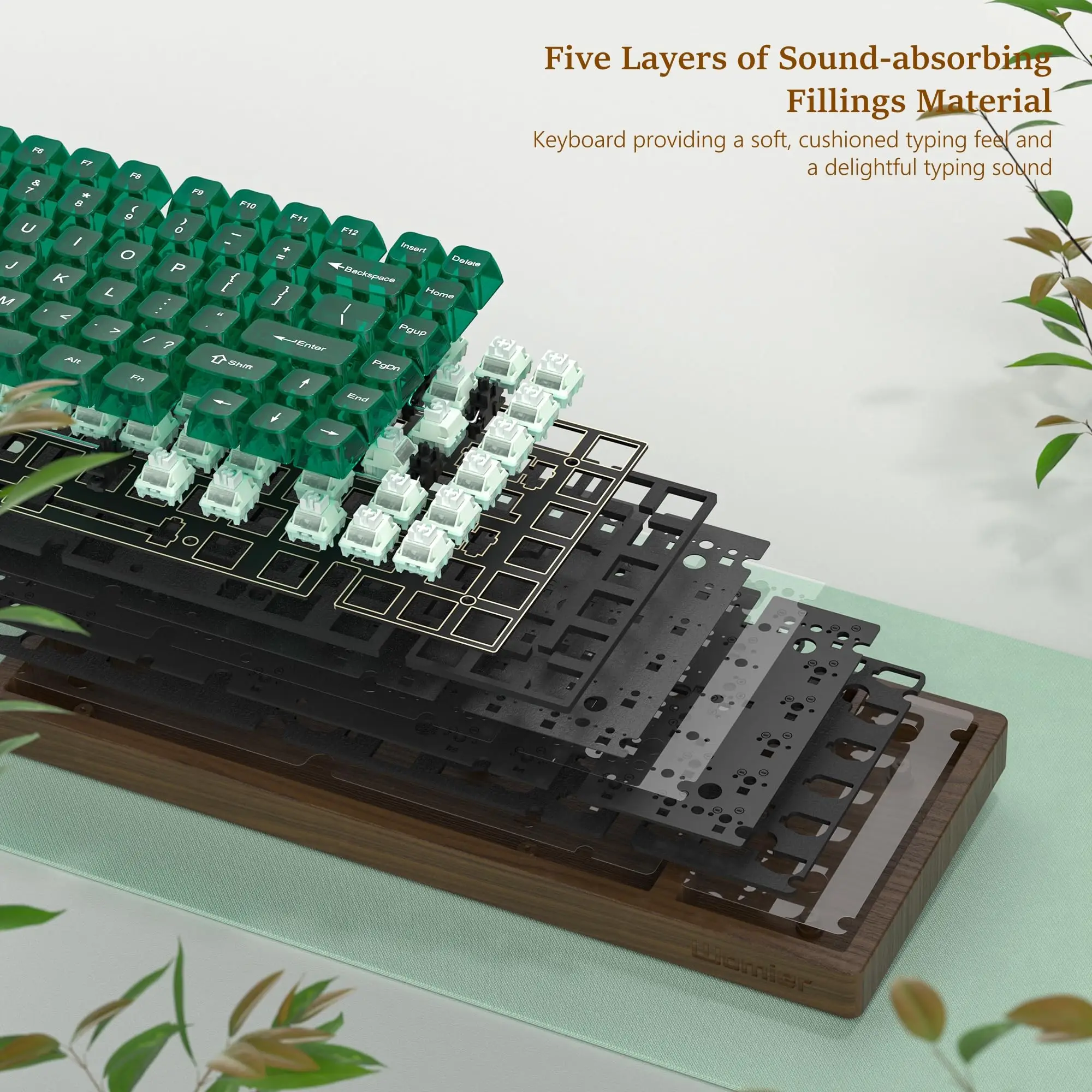 I am very satisfied with both the appearance and the typing experience. The key sound is slightly lively but feels light. The wooden frame is simply wonderful. The transparent green keycaps reflect the light beautifully. The accessories are also quite complete. The manual includes Japanese instructions, which made it easy to understand.