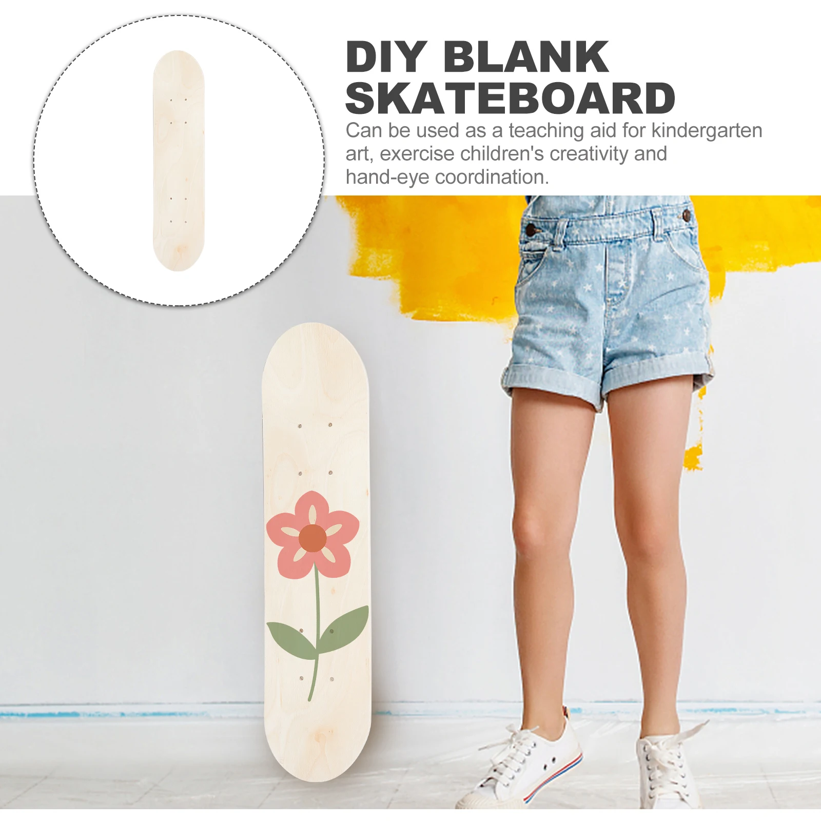 Are you looking for a paintable skateboard for your kids? Do you want to DIY your own skateboard? This wood skateboard will be a good choice. The DIY paintable design makes it more special and meaningful. Special design, let you have a better sense of experience.