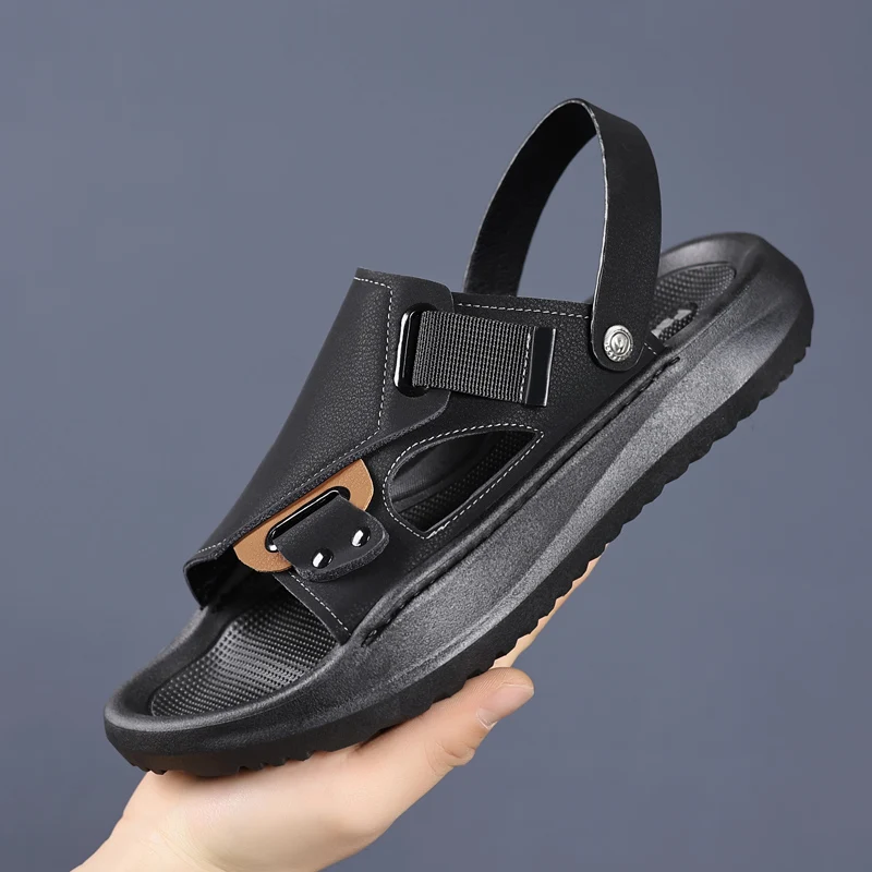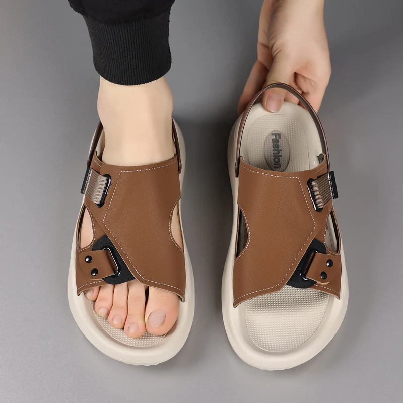 Crafted with premium two-layer cowhide, these sandals offer durability and comfort for daily wear.