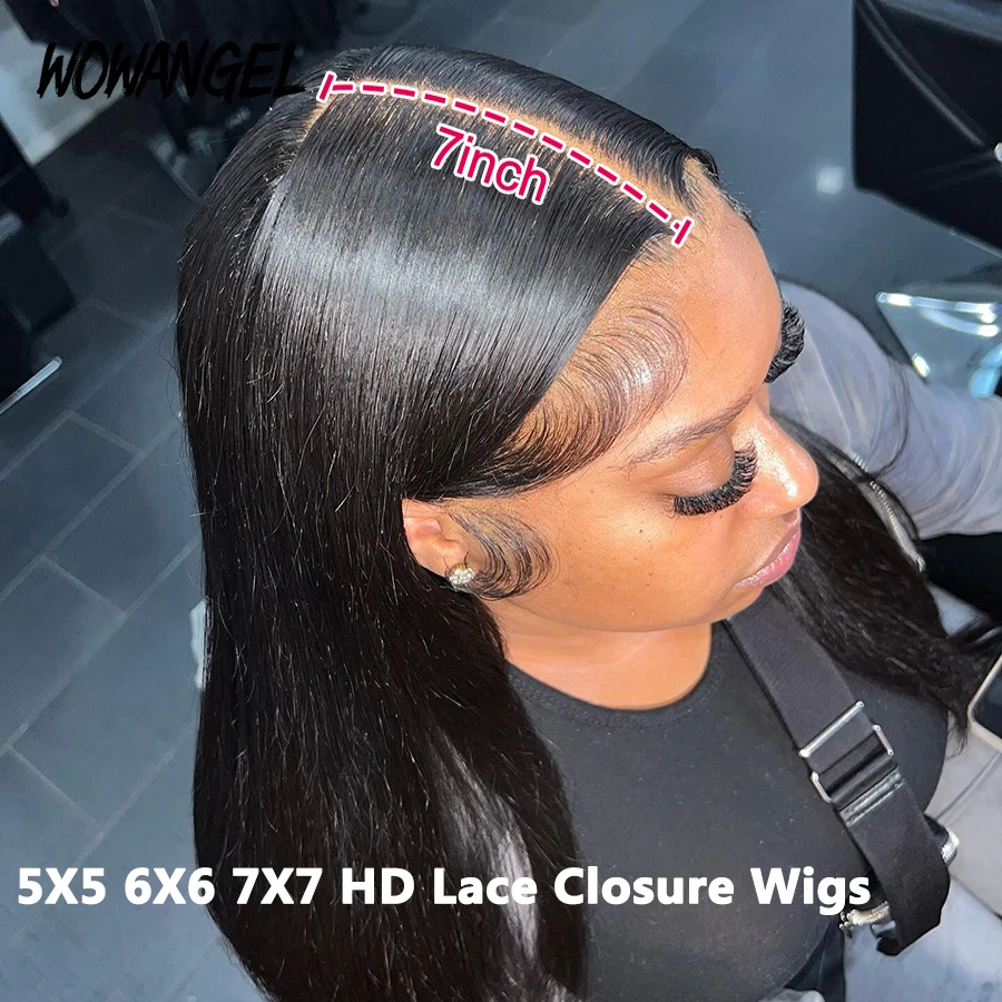 Wow Angel Glueless Wigs 7×7/6×6/5×5 HD Lace Closure Wigs Silk Straight Melt Skins Deep Part Ready to Go Human Hair Wig For Woman