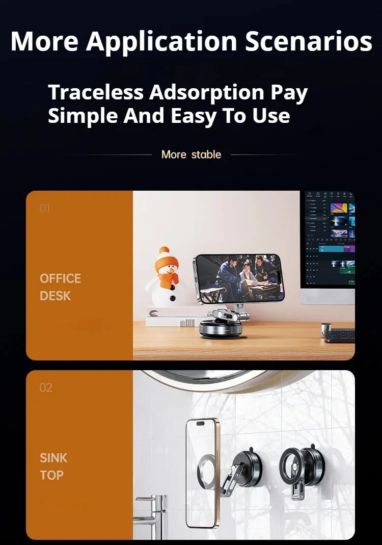 X53 Magnetic Phone Holder Rotating Folding Vacuum Suction Mag Stand For Car Navigation Gym Kitchen Streaming Bracket