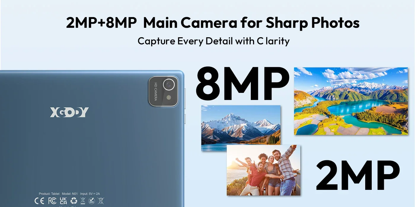 【HD Display with Eyes Protection】XGODY tablet equipped with a high resolution 1280*800 IPS display, which shows a brightly colored wide-screen for a more realistic viewing experience with sharper and brighter images. Comes with a 3-layer screen protector which prevent screen scratches. The front 2MP and rear 8MP cameras can easily satisfy video calls, online learning, etc. The 10 inch tablet LCD designed with low blue light technology, the screen flicker and the damage to the eyes caused by irritating blue light will be reduced, and you can have a good time safer and with more comfort.
