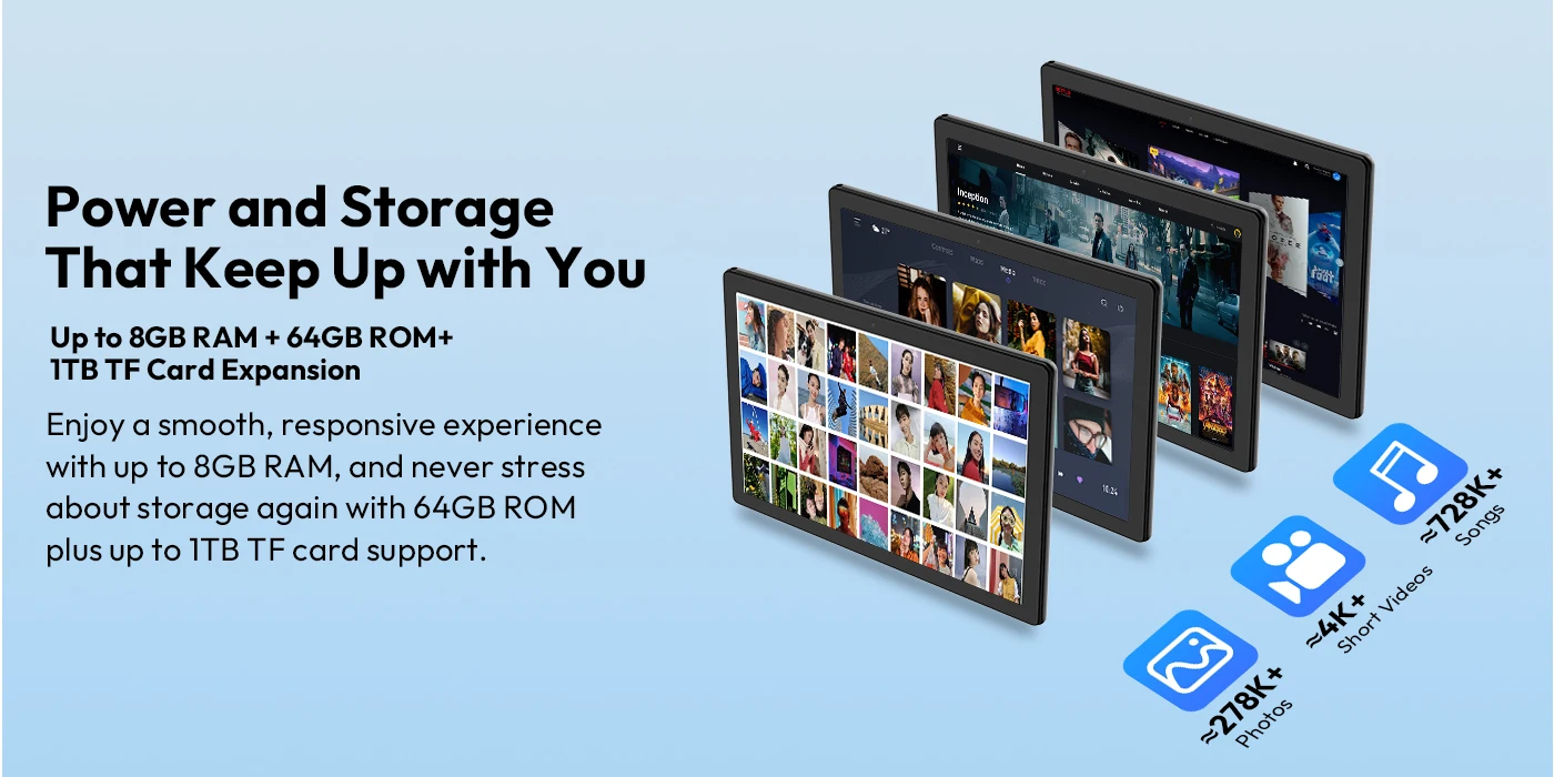 【Large Storage 】XGODY Android tablet comes with 64GB ROM and maximun 1TB TF card ( not included )expandable ensures you of a fast application launch and smooth gaming experience. Our tablet also come with pre-installed Google Play Store, you can easily download any needed Apps such as Netflix, Facebook, Twitter, etc.