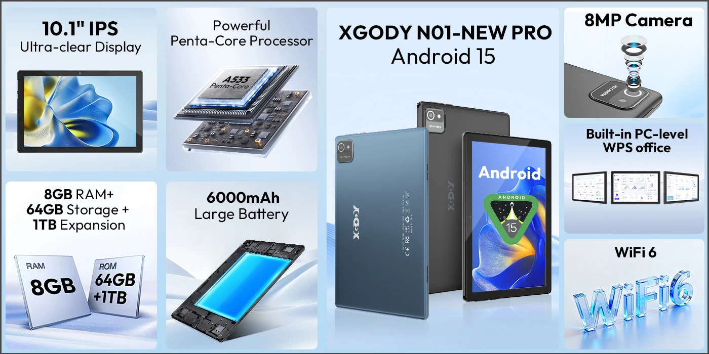 【2025 Upgraded Version】XGODY Android tablet features the latest operating system Android 15 and an 1.8 GHz Penta-core processor ensure of excellent performance, seamless multitasking, getting rid of unexpected ads, emphasizing privacy and security by designing enhanced app permissions, giving users complete management control.