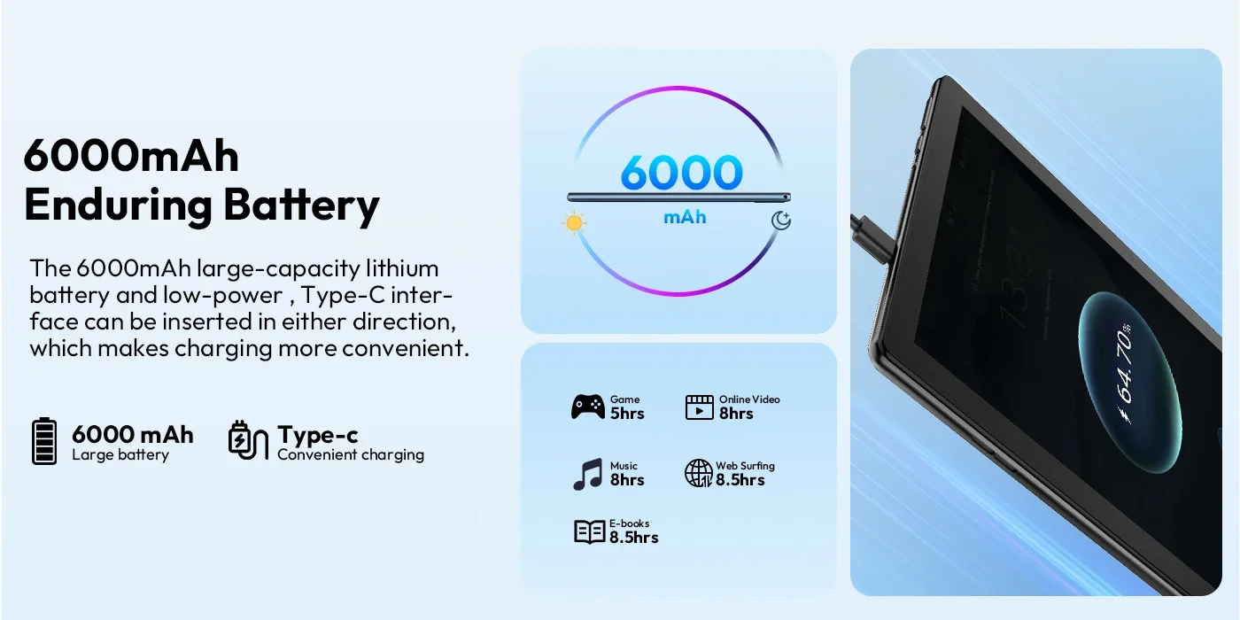 【Perfect Choice for Everyday Use】The android tablets with lightweight and slim design, only 12mm thin body, allows you to enjoy e-books, movies, TV shows and music effortlessly while traveling or on business trips. We promised of an ONE-YEAR limited warranty . Buy with peace, use with confidence.
