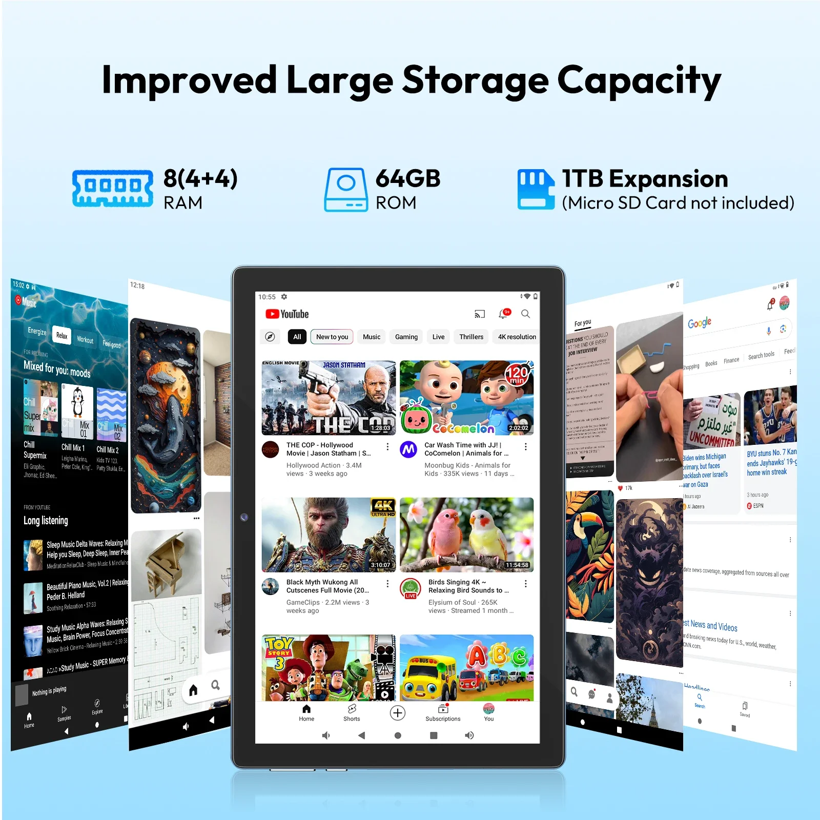 【Wi-Fi 6+Bluetooth5.0】XGODY android tablet 10 inch uses the lastest sixth generation WiFi technology and the upgraded bluetooth 5.0. Dual band integrated chips make the 2.4g WiFi more stable and the lastest bluetooth 5.0 connection supports all your favorite accessories, highly increased the speed of data transfer, improved network capacity and reduced network delays.