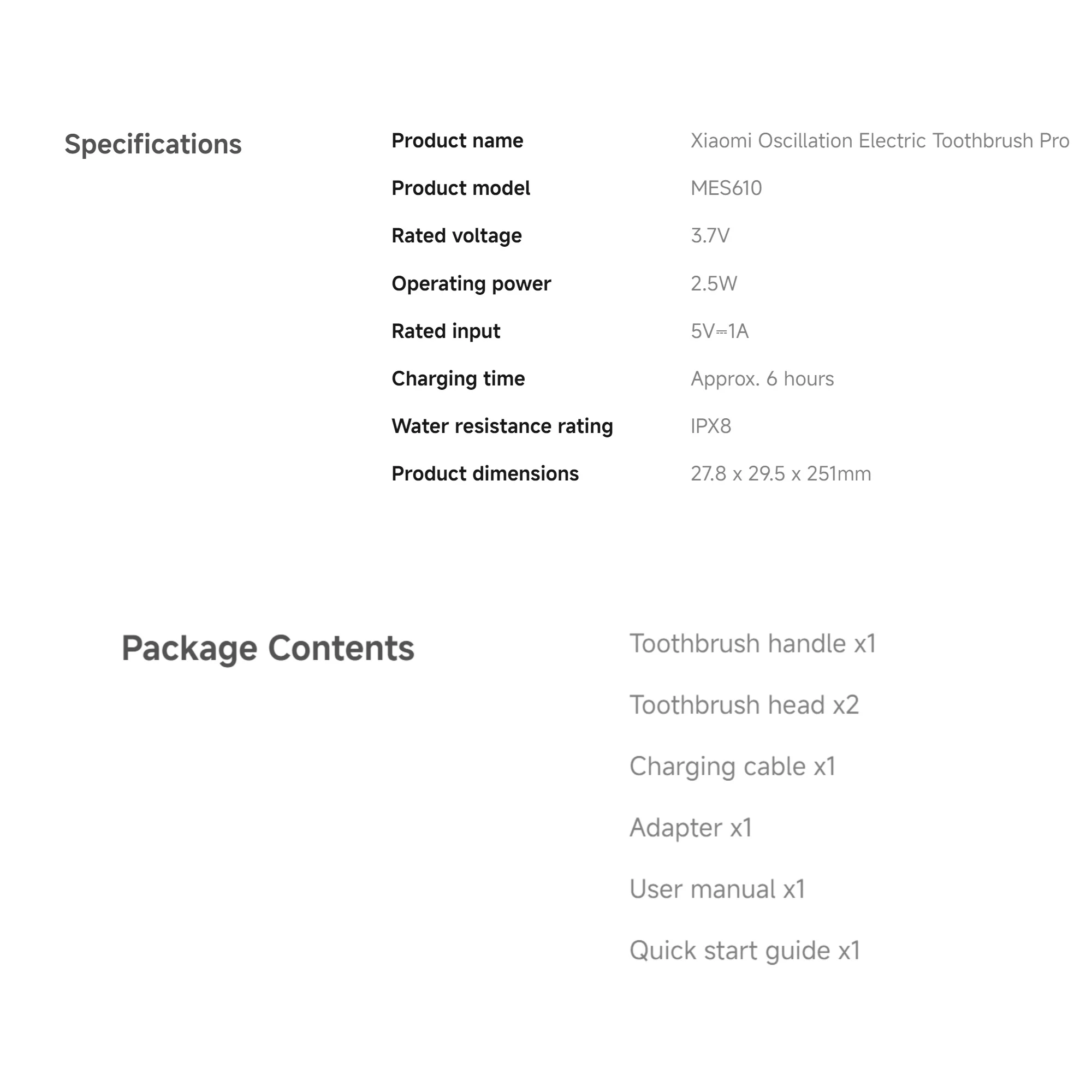 - Name: Xiaomi Oscillation Electric Toothbrush Pro EU