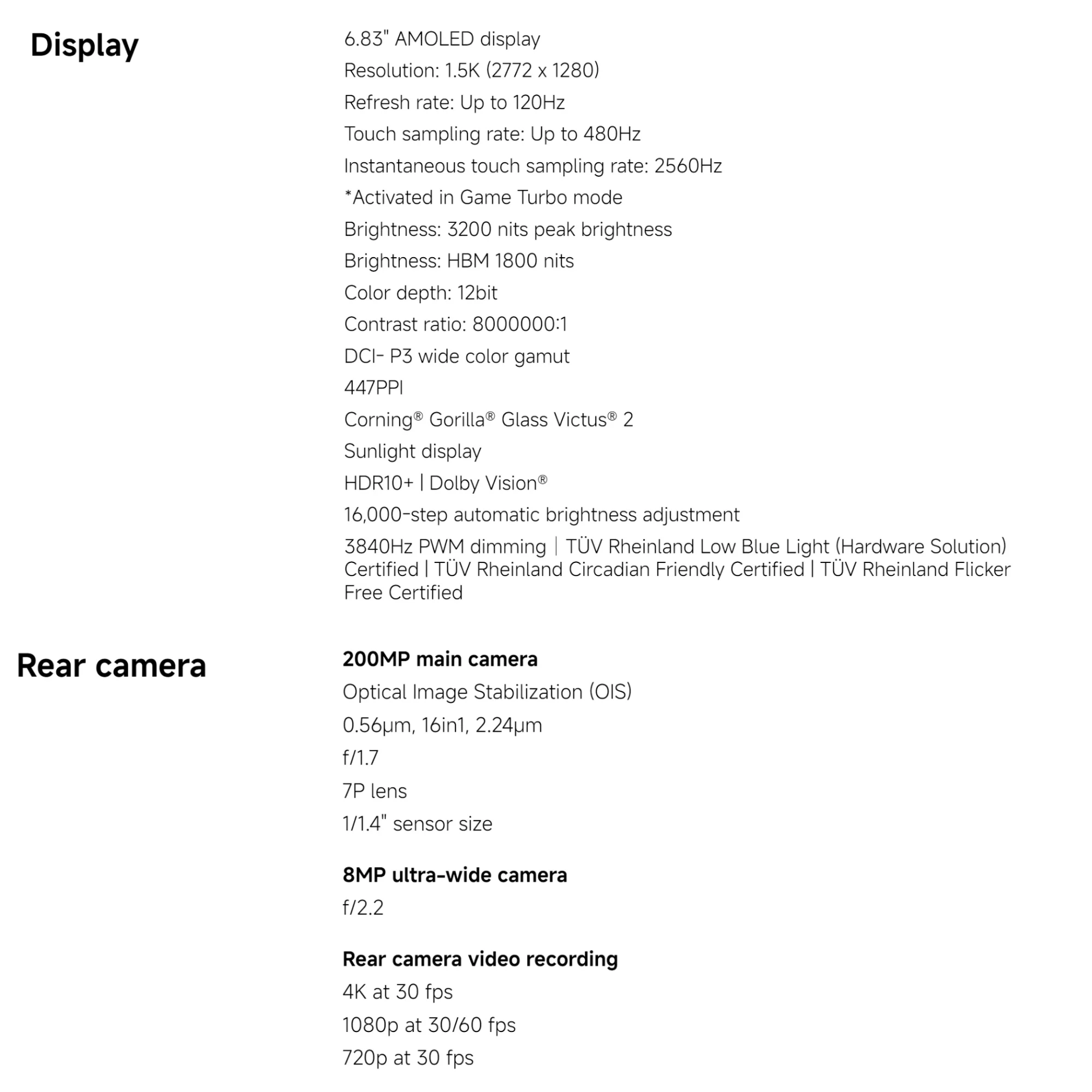 - Rear Camera Pixel: 200MP