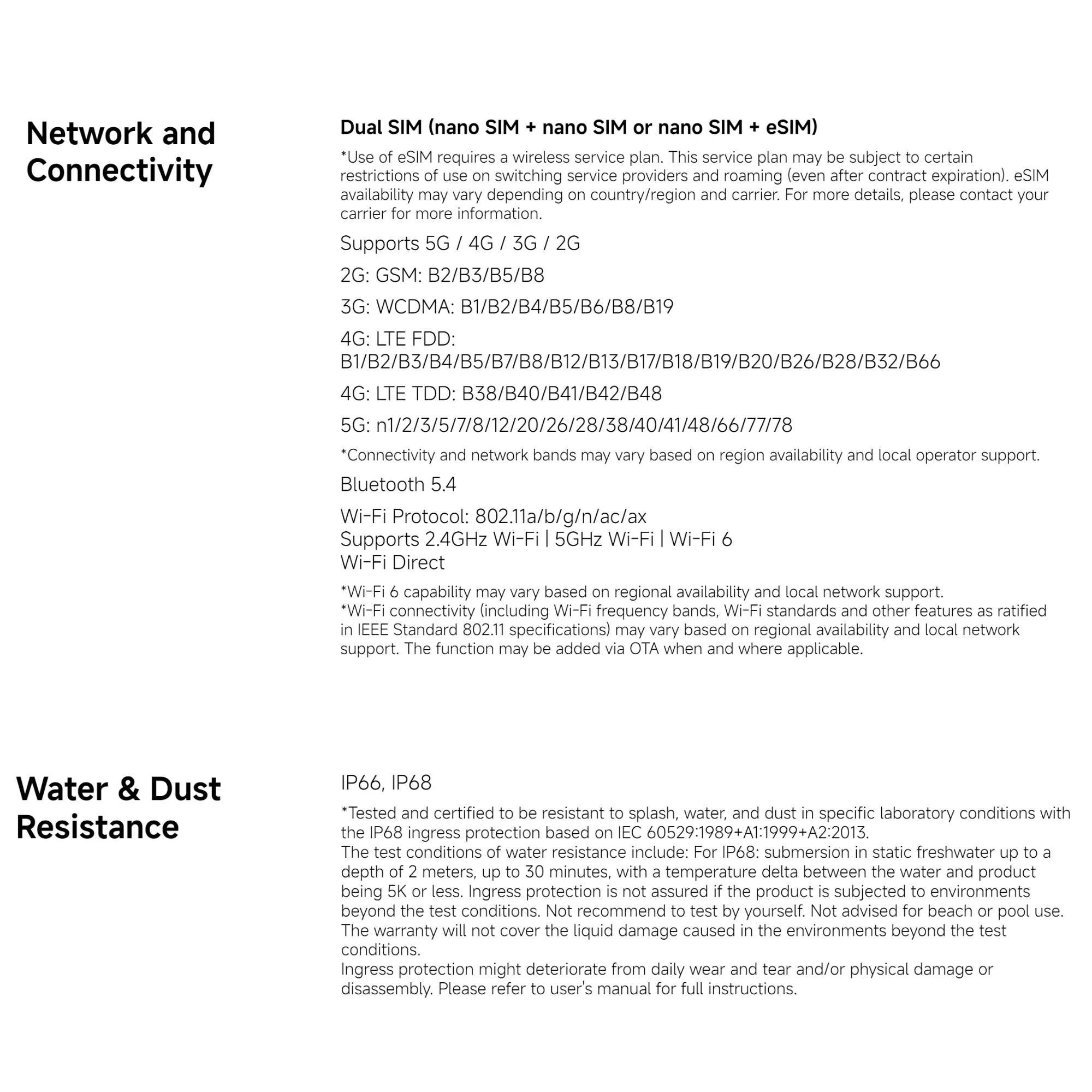 - SIM Card Quantity: 2 SIM Card,1 SIM Card + 1 eSIM