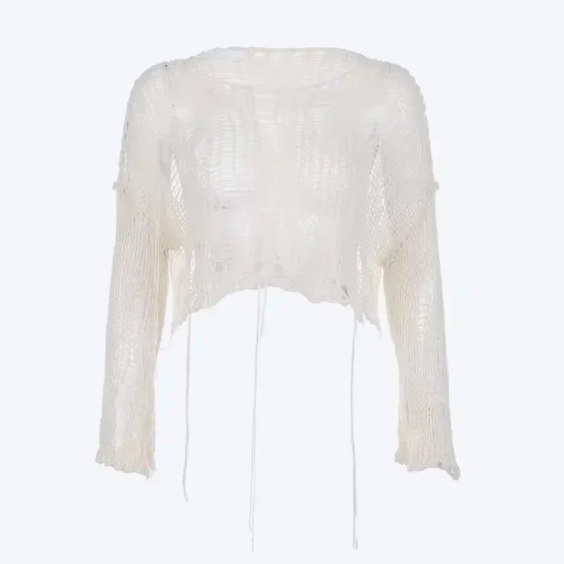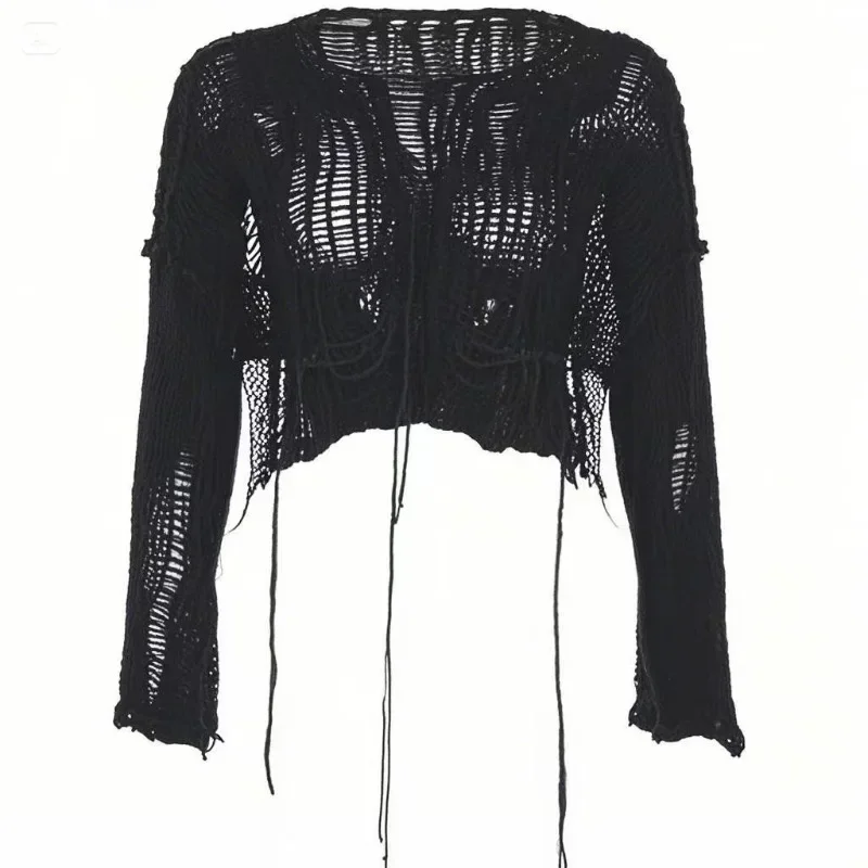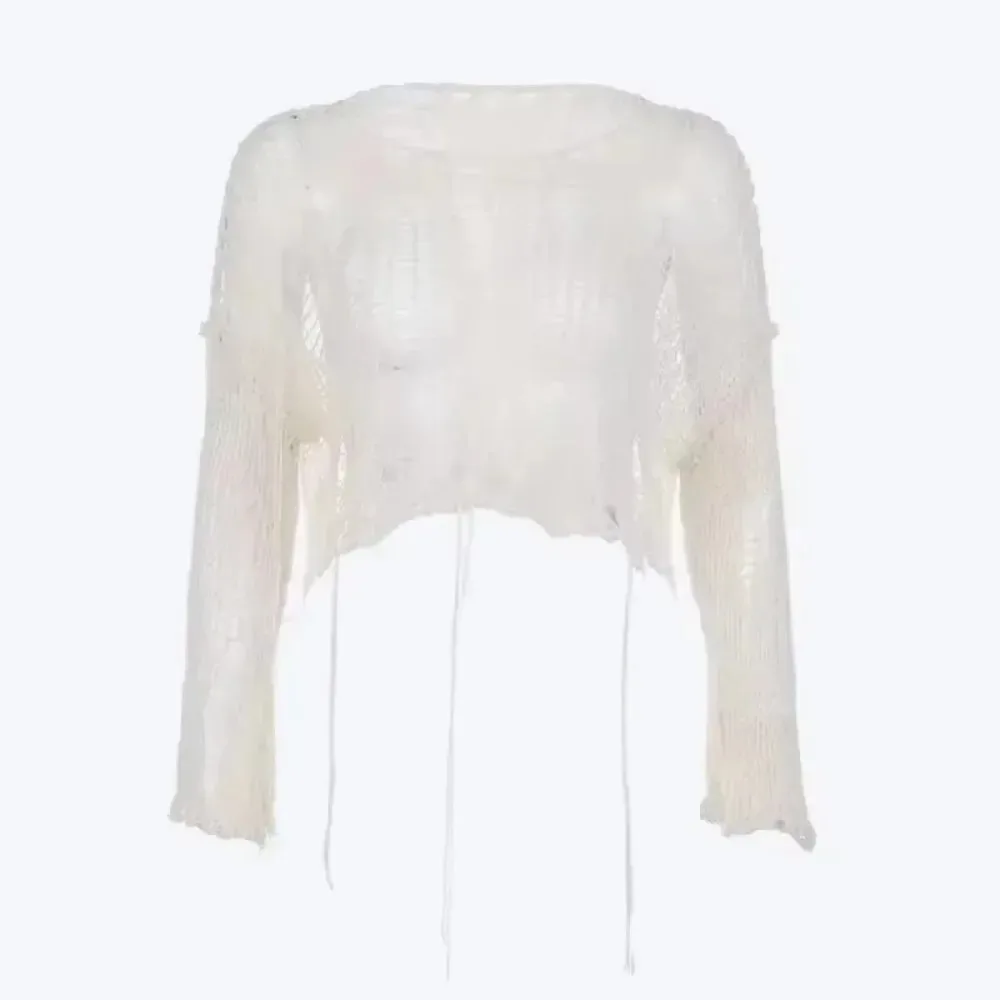 - jacket with holes: women's torn sweater,crop sweater