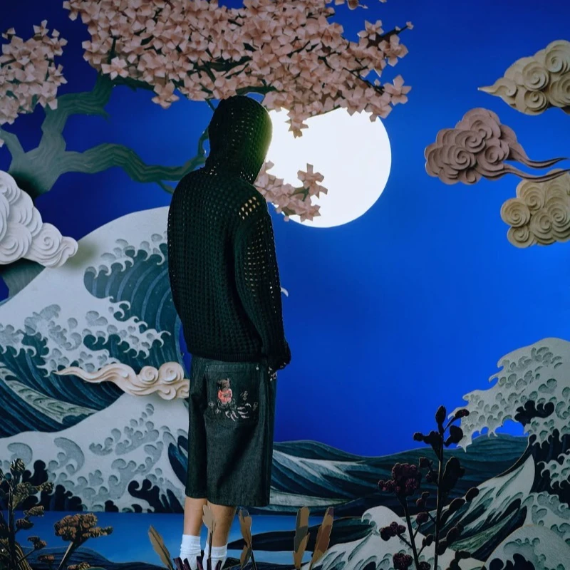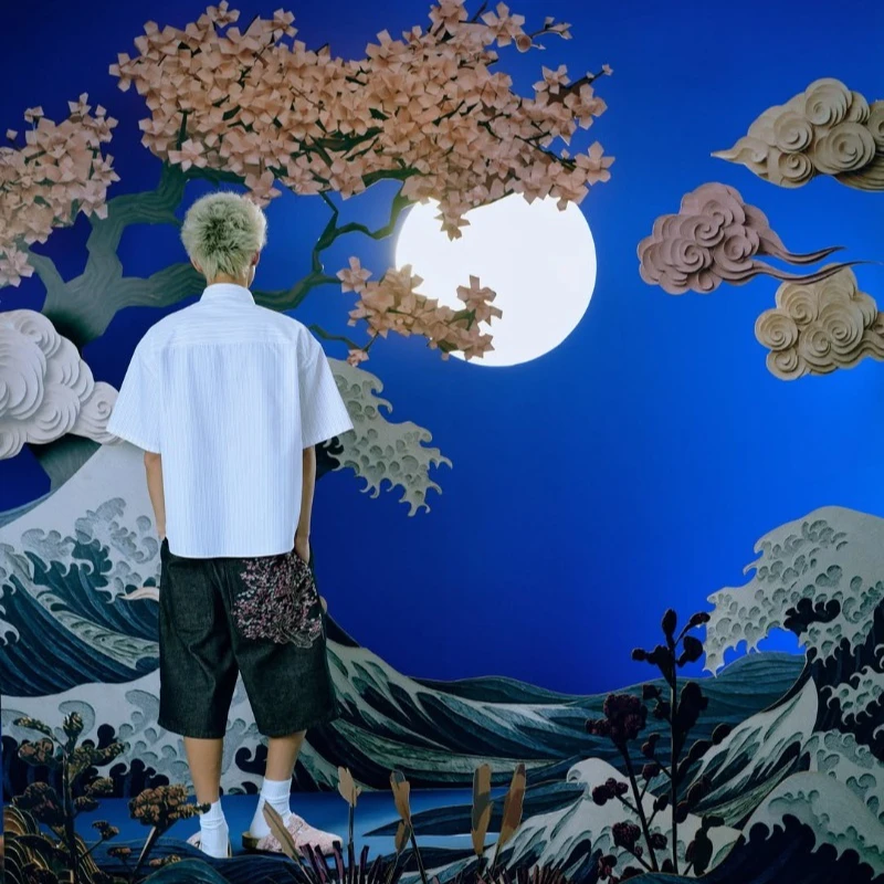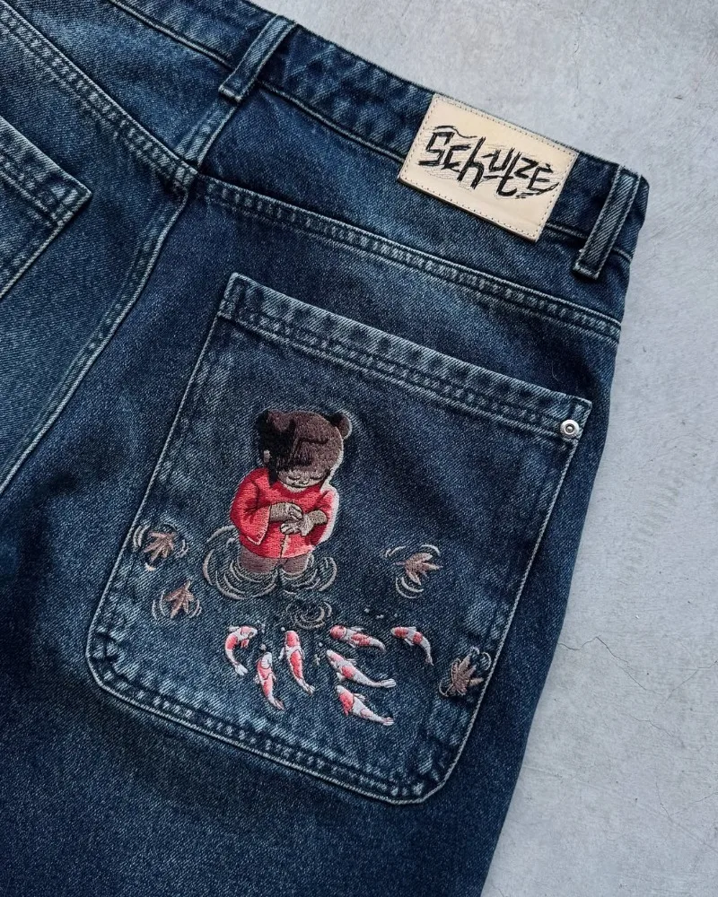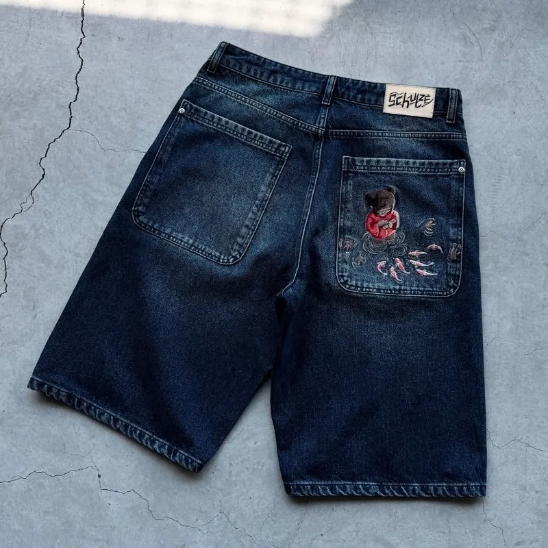 Y2K Harajuku Shorts vintage plum blossom embroidery Baggy Denim Shorts