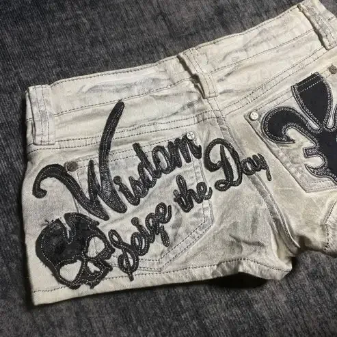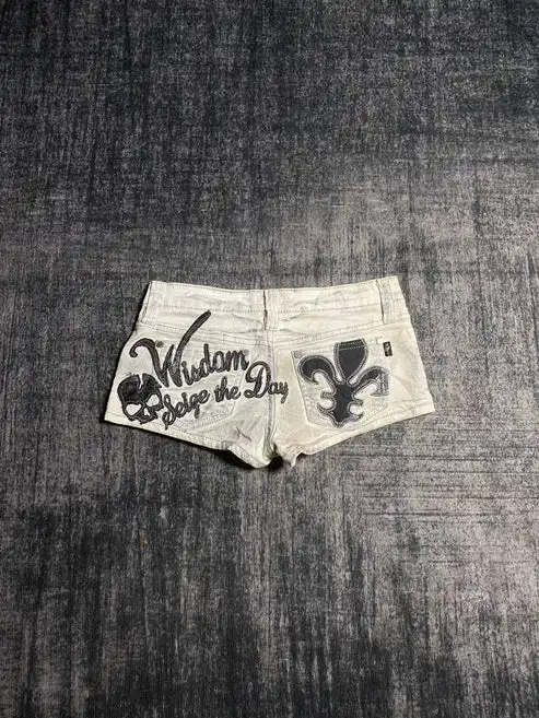 Y2k Summer Hot Girl Cowboy Shorts Women Harajuku Retro English Embroidered Super Shorts Fashion Gothic Punk Low Waist Shorts