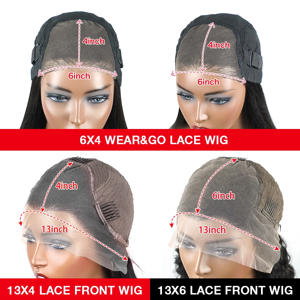 Type: 13×4 & 13×6 are lace wig with 4c edges curly baby hair (lace needed cut by yourself); 6×4 is pre cut lace without glue, without 4c edges curly baby hair