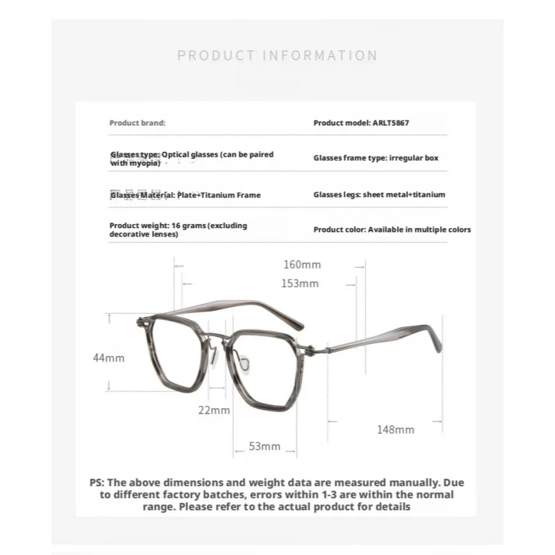 - Note: The frame size is measured manually, the error may be within 1-3mm, please understand