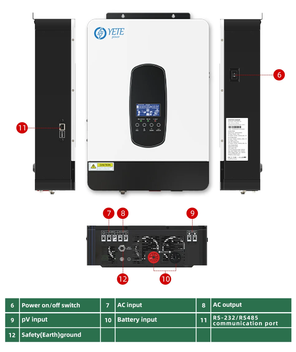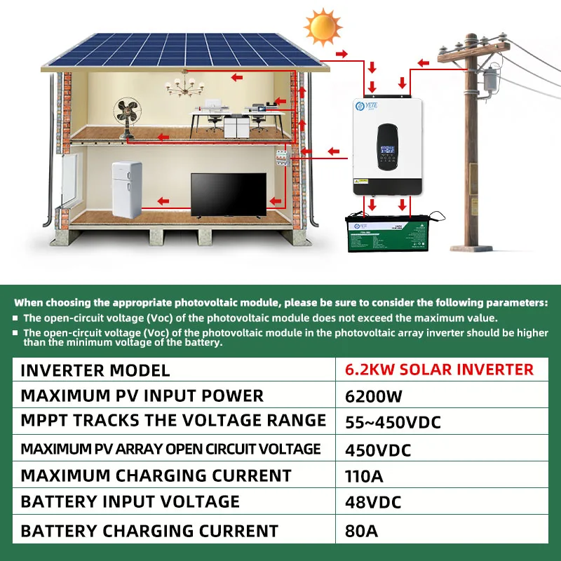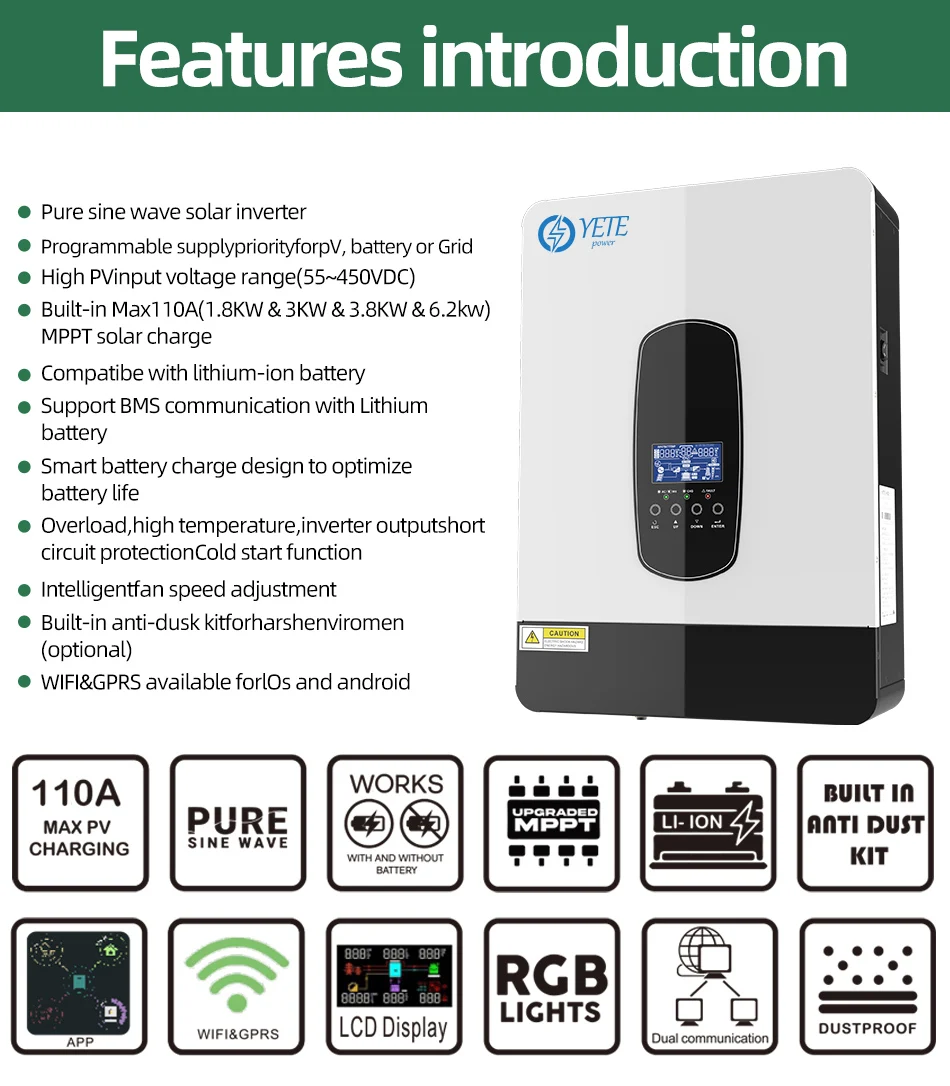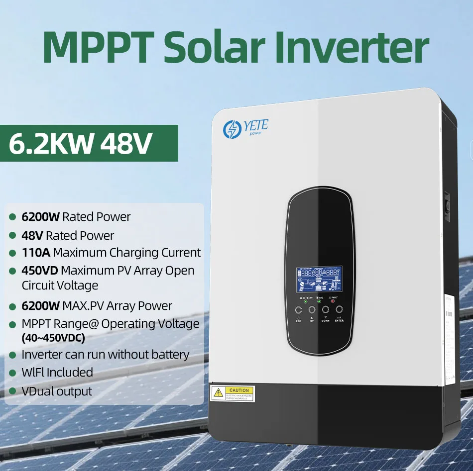 YETE 6.2KW 4.2KW Hybrid Solar Inverter On Grid Pure Sine Wave Inverter 48V 230V Dual Output with MPPT 120A Solar Charger