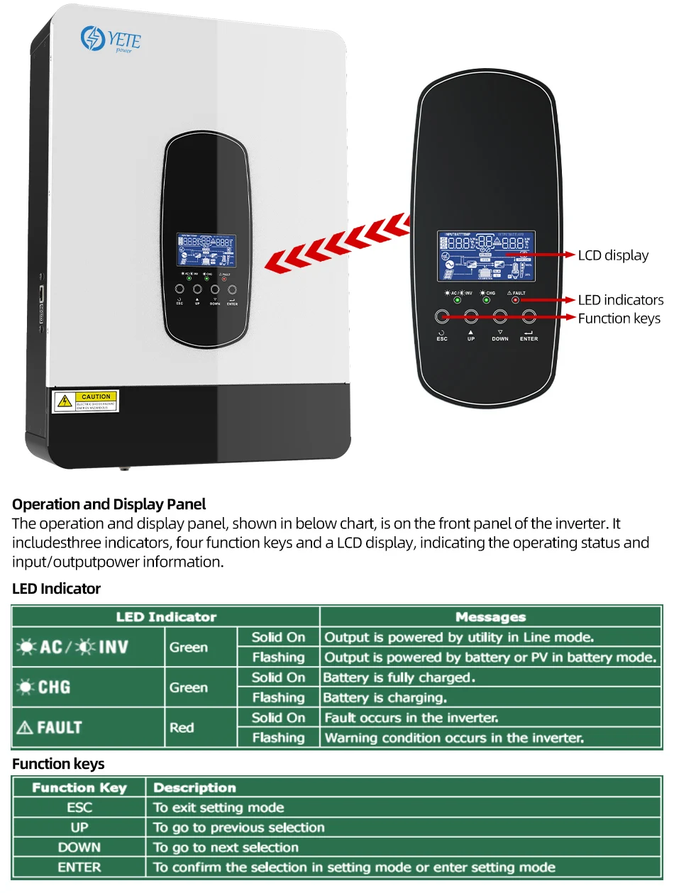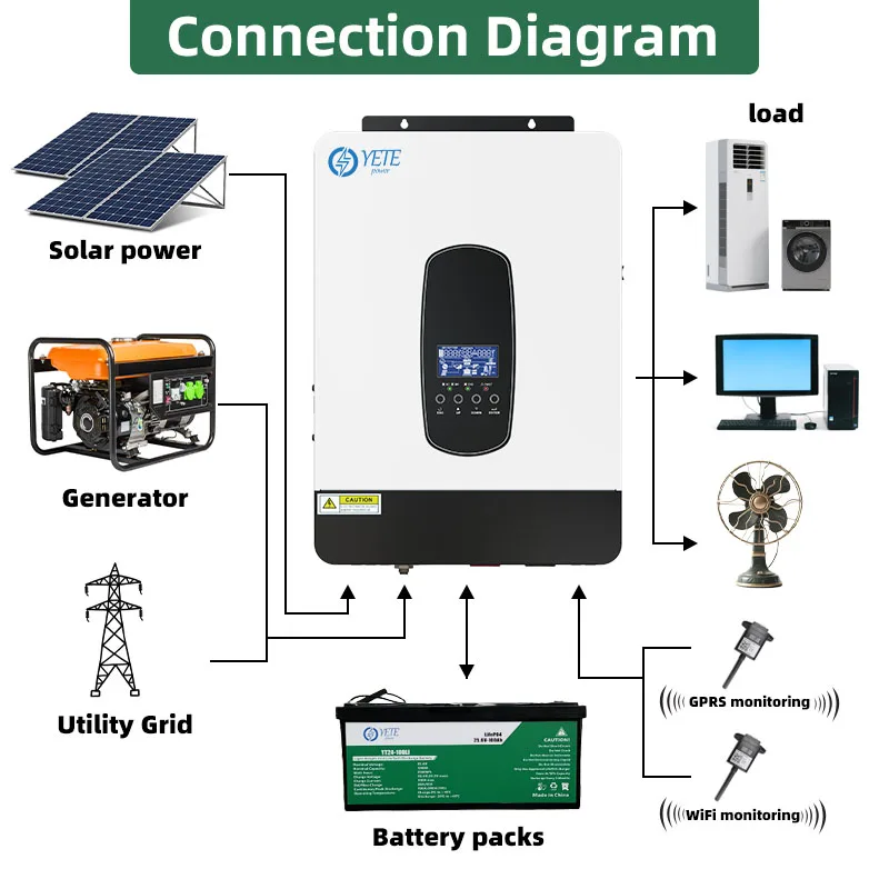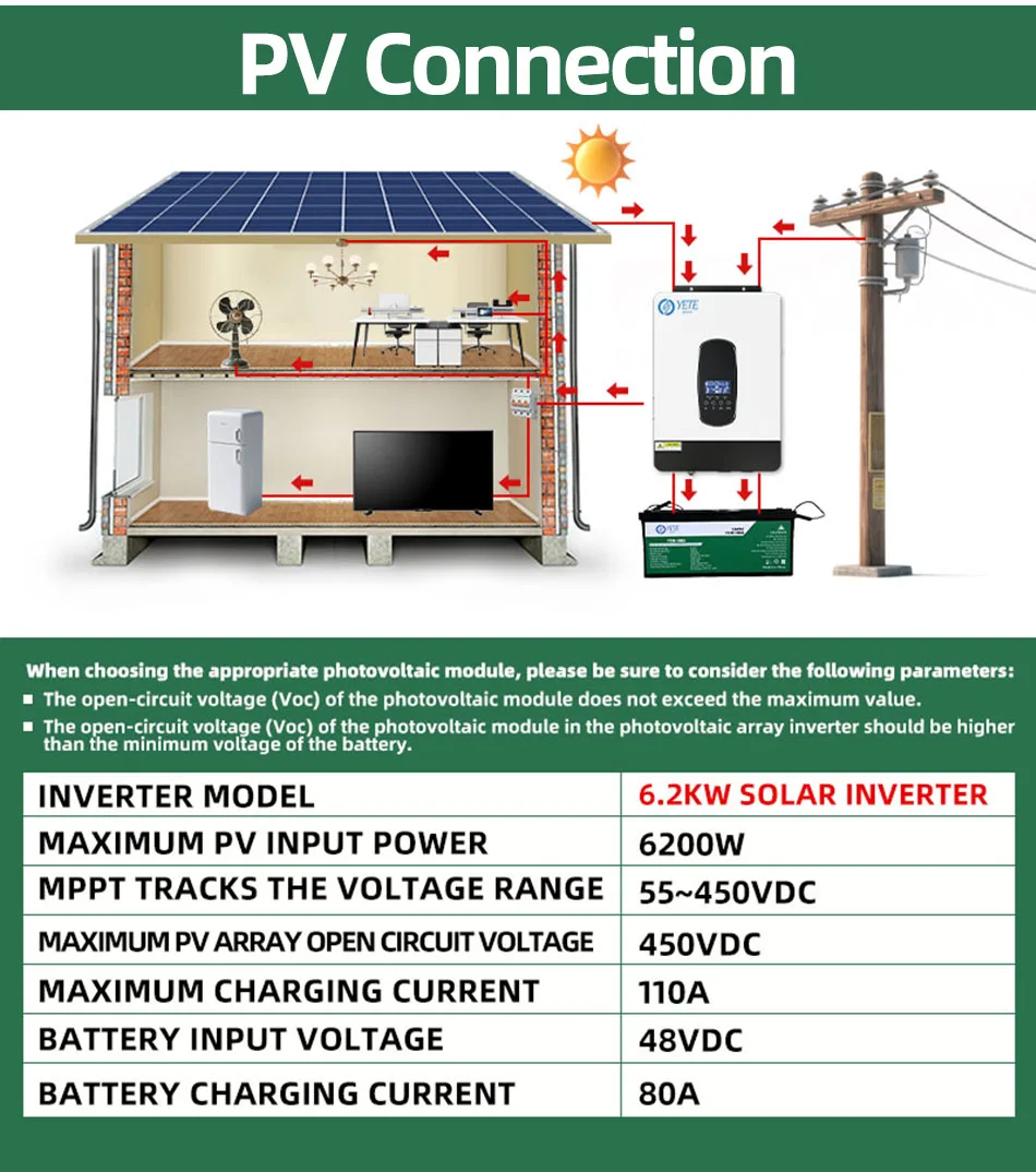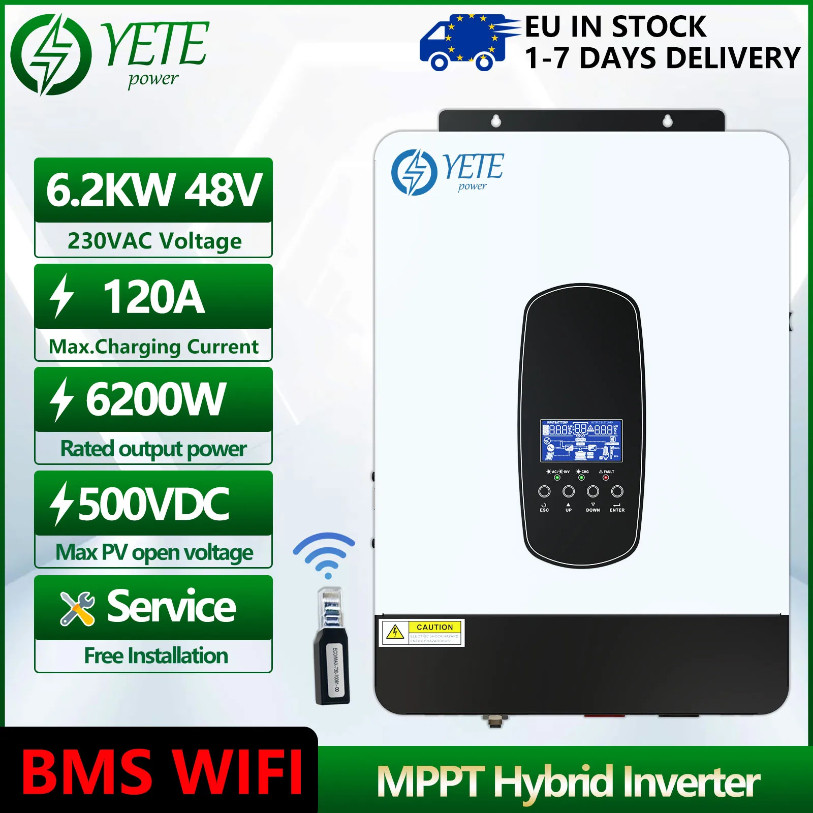 YETE 6.2KW 4.2KW Hybrid Solar Inverter On Grid Pure Sine Wave Inverter 48V 230V Dual Output with MPPT 120A Solar Charger